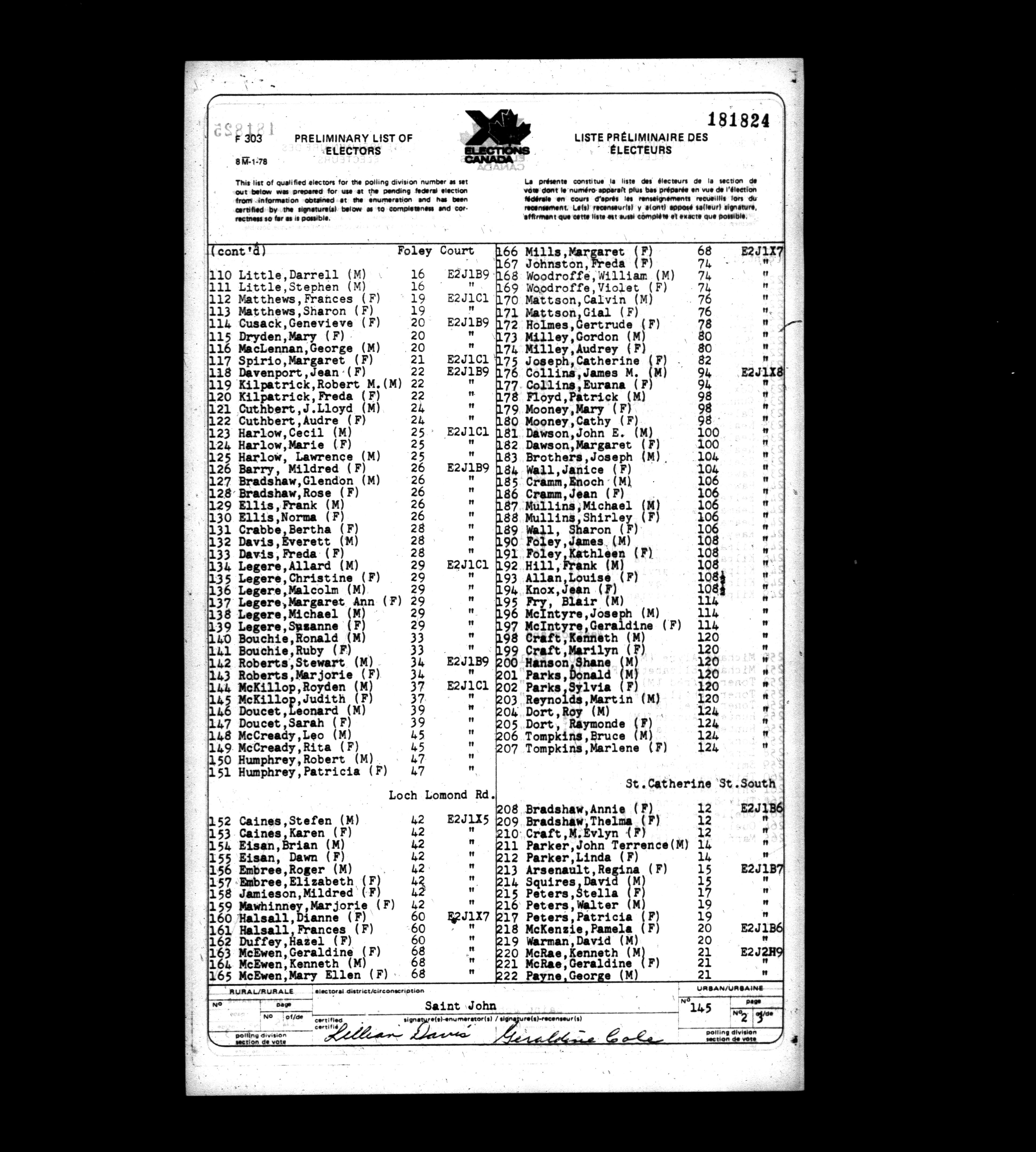 Voters' lists New Brunswick, 1979 - 662