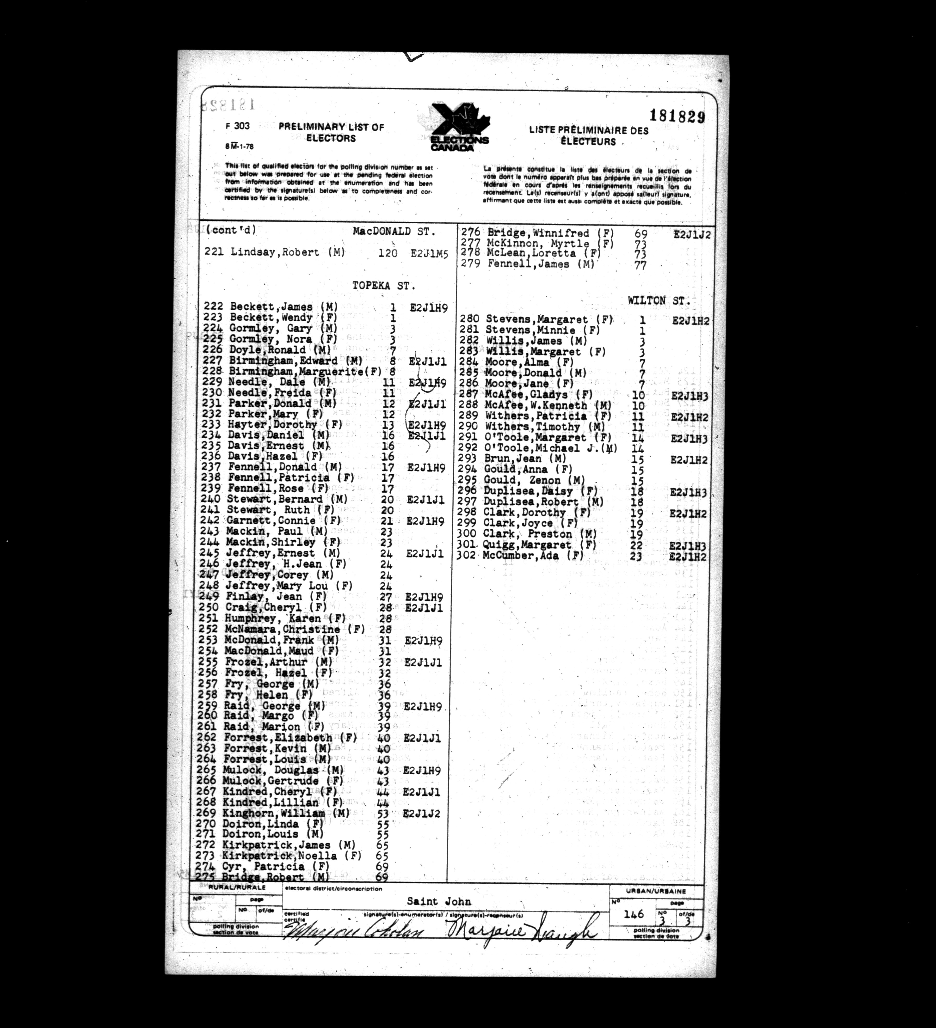 Voters' lists New Brunswick, 1979 - 662