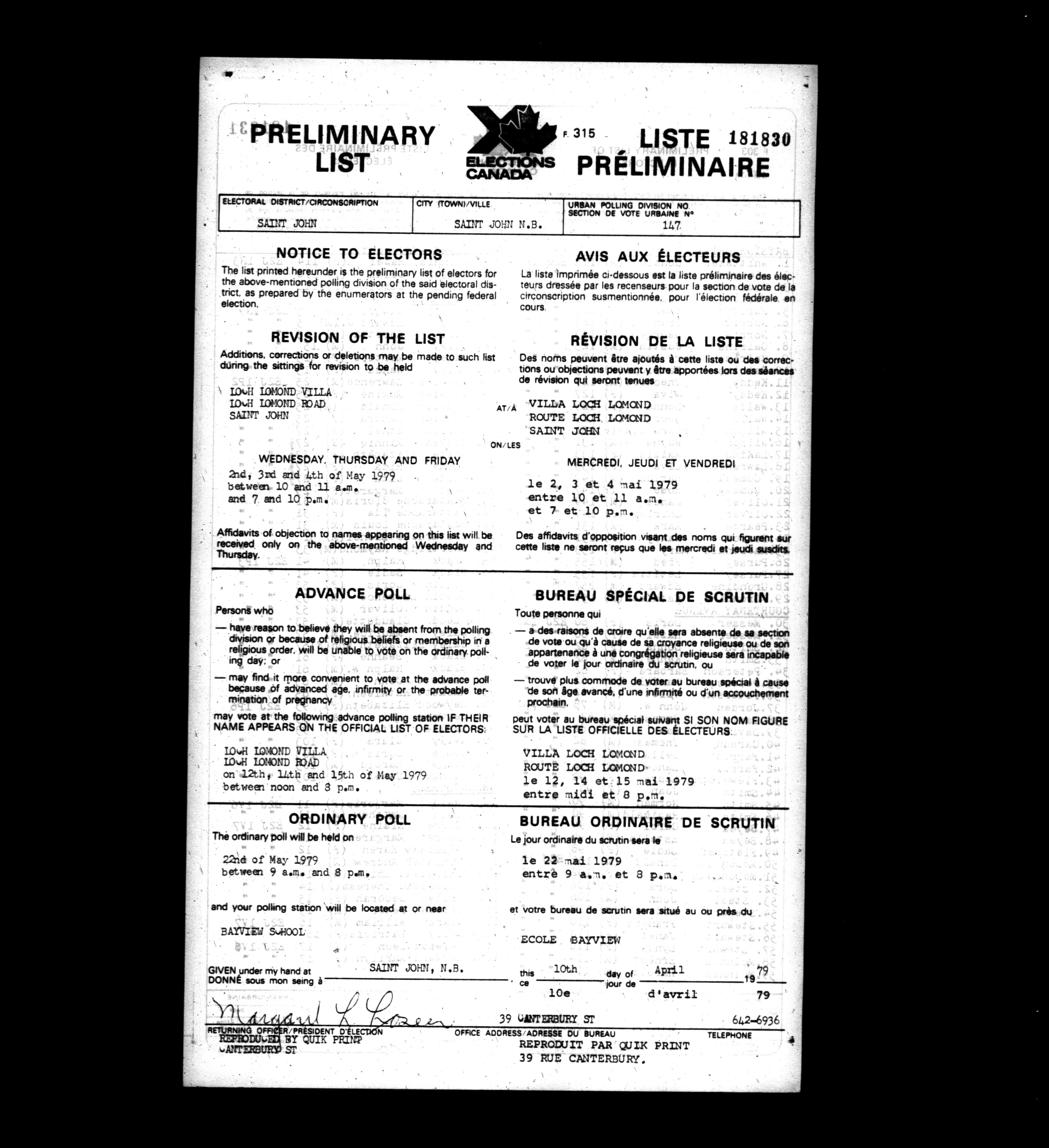 Voters' lists New Brunswick, 1979 - 662