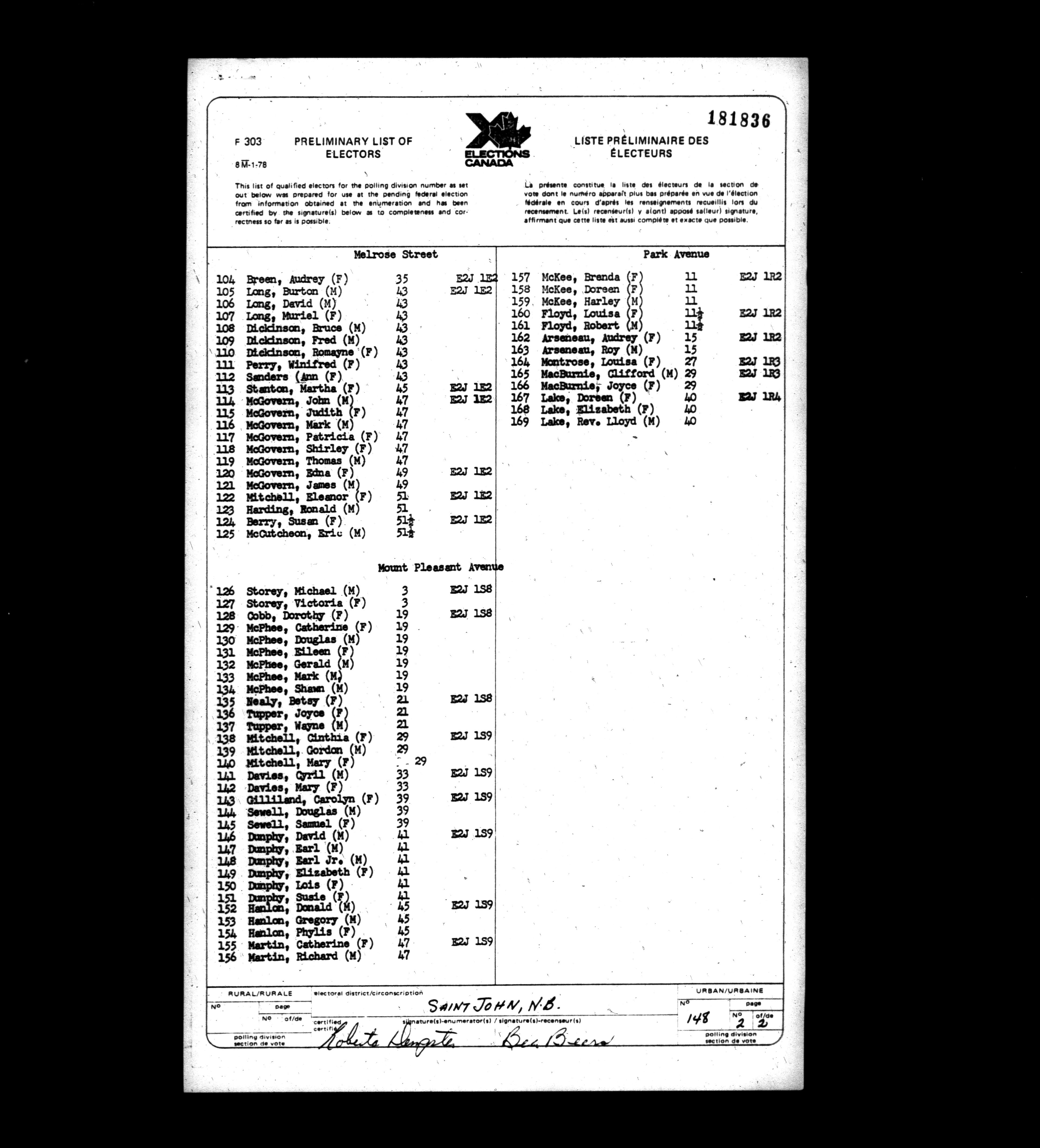 Voters' lists New Brunswick, 1979 - 662