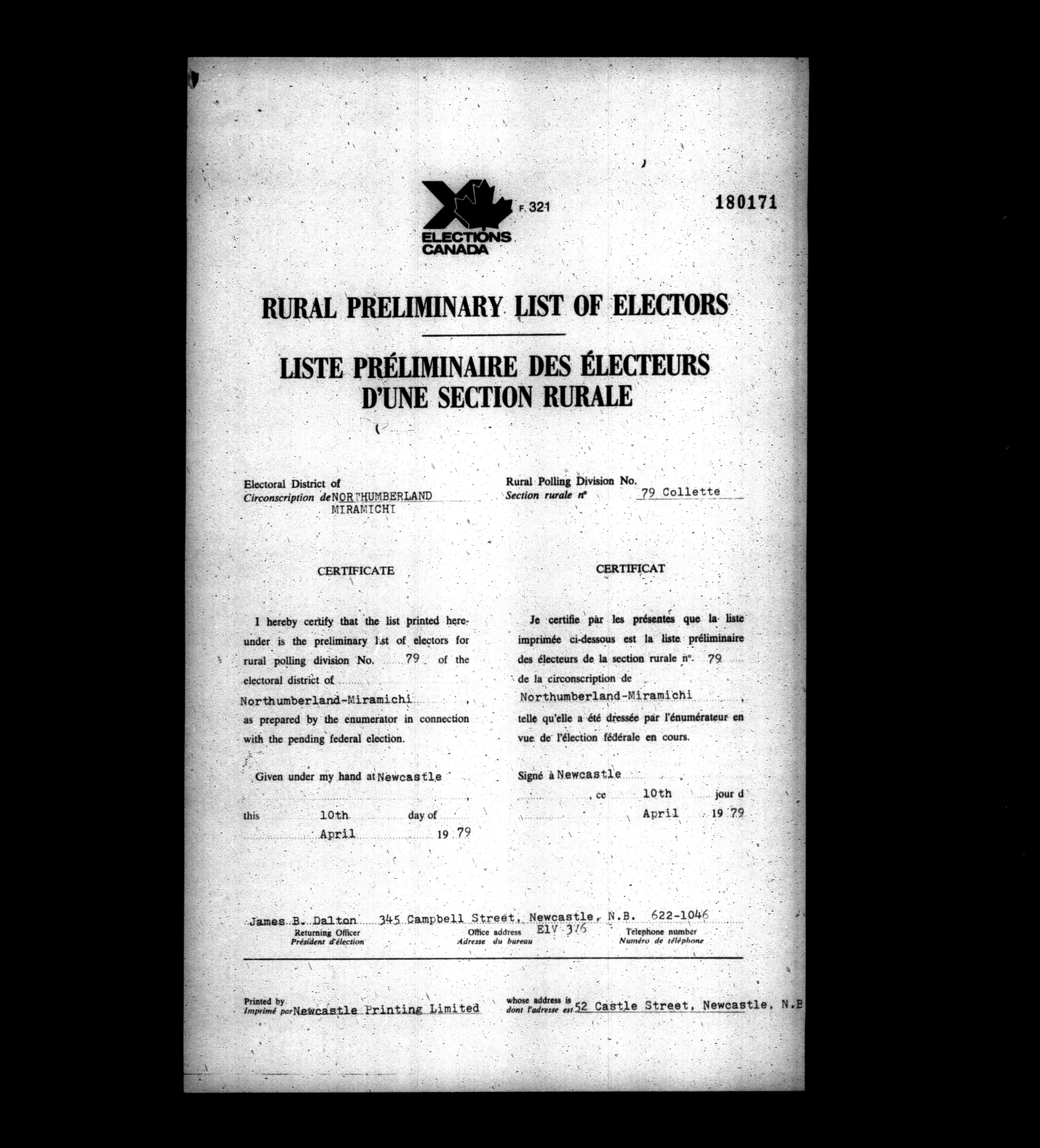 Voters' lists New Brunswick, 1979 - 662