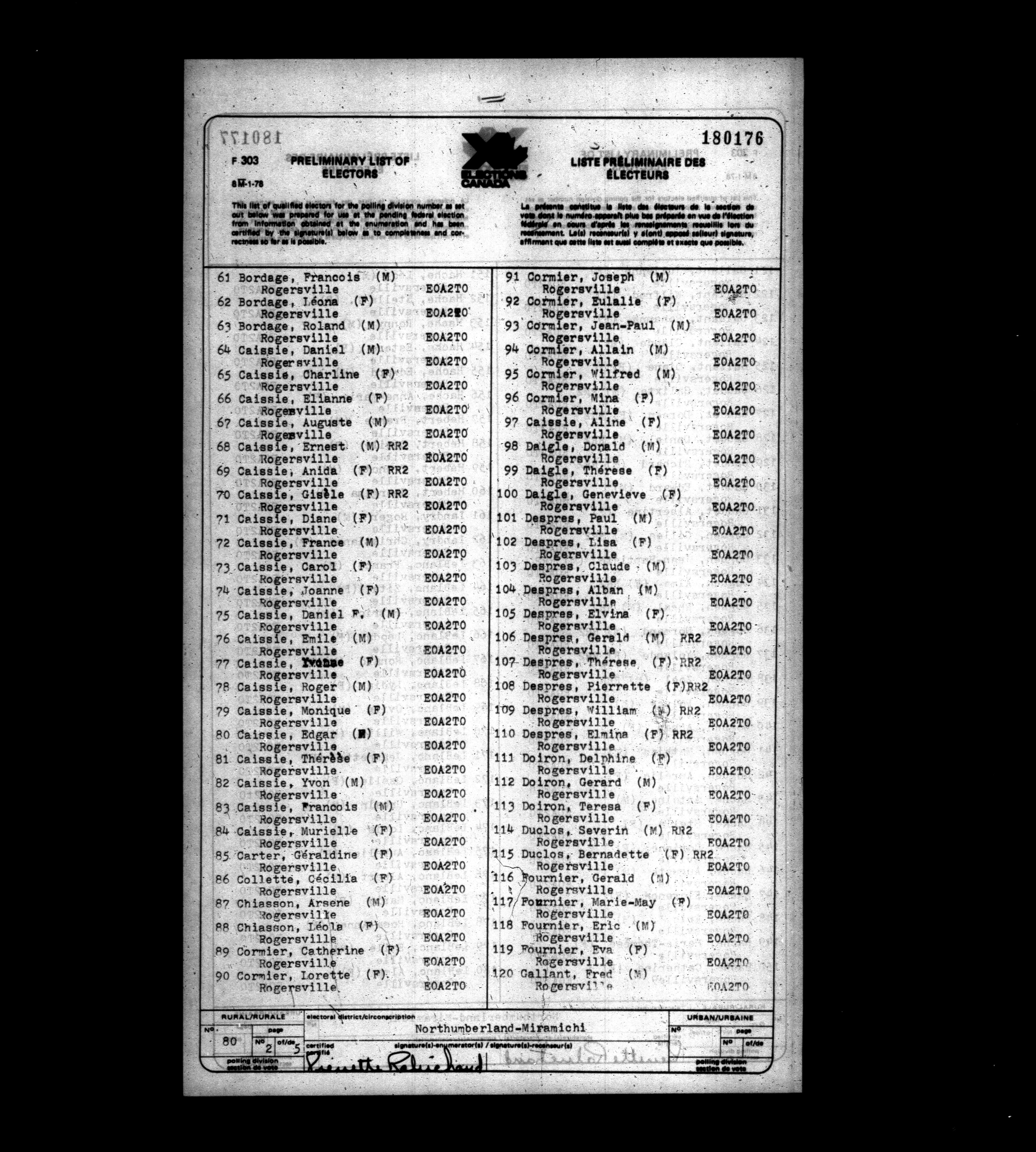 Voters' lists New Brunswick, 1979 - 662