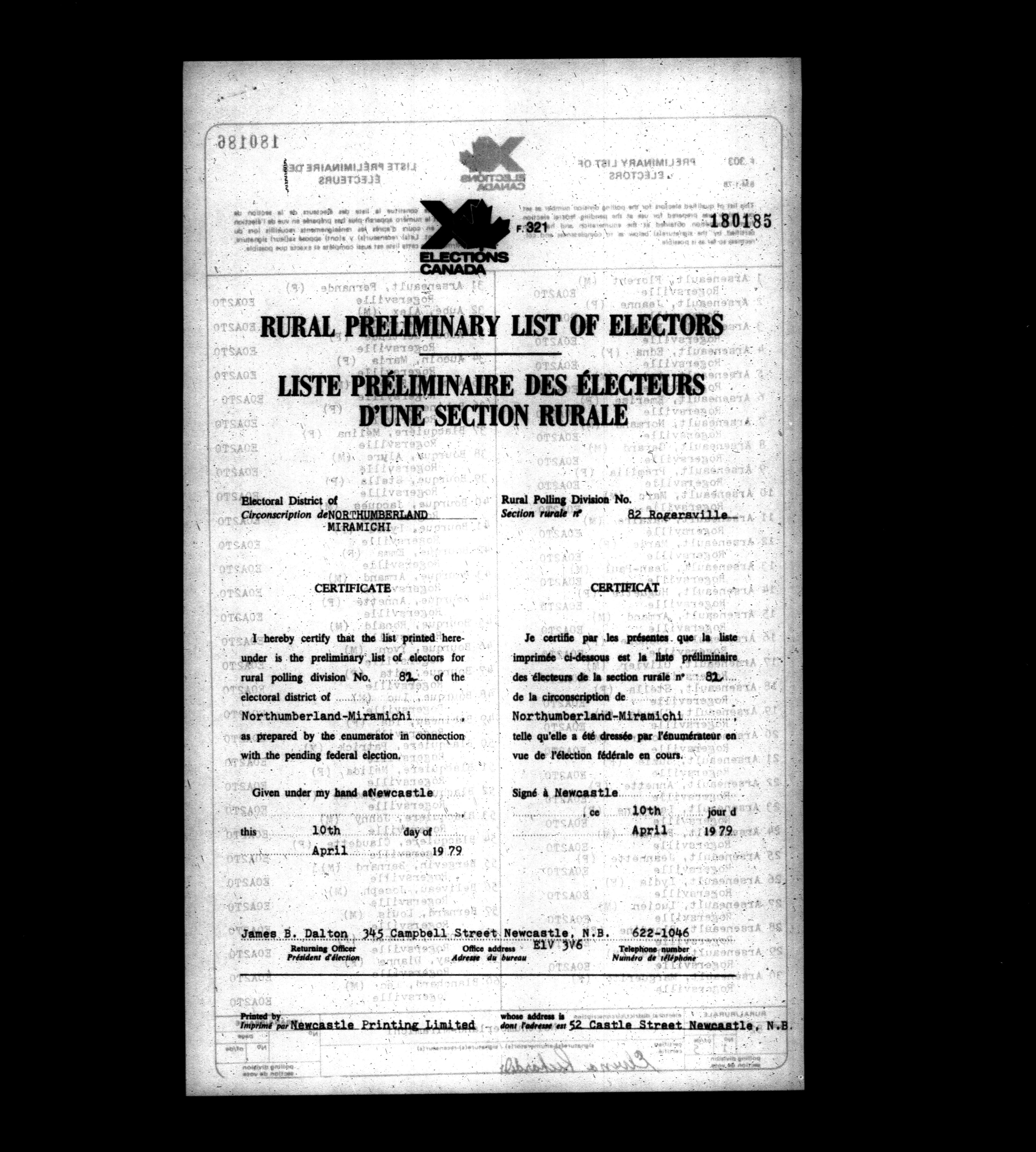 Voters' lists New Brunswick, 1979 - 662