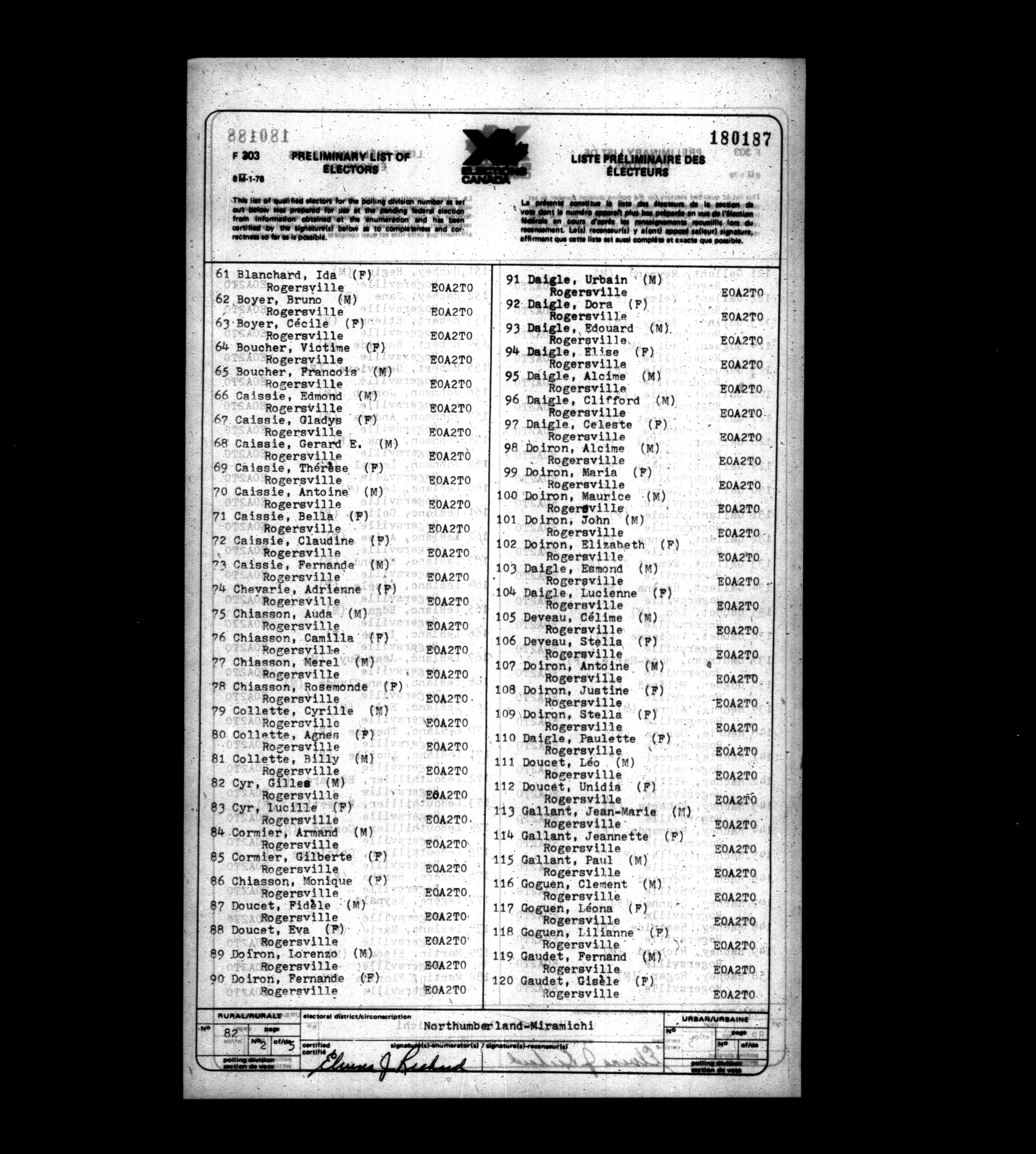 Voters' lists New Brunswick, 1979 - 662