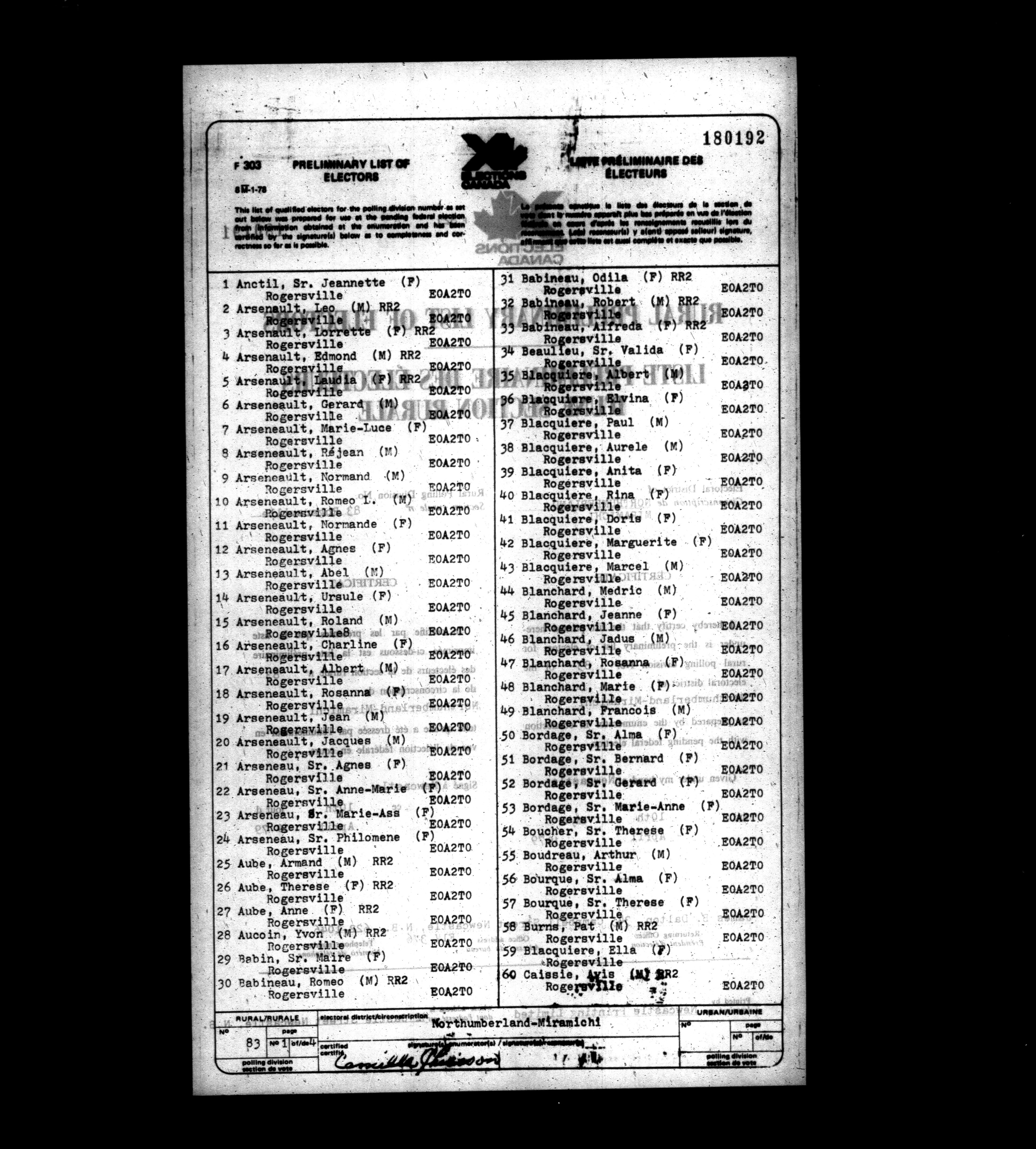 Voters' lists New Brunswick, 1979 - 662
