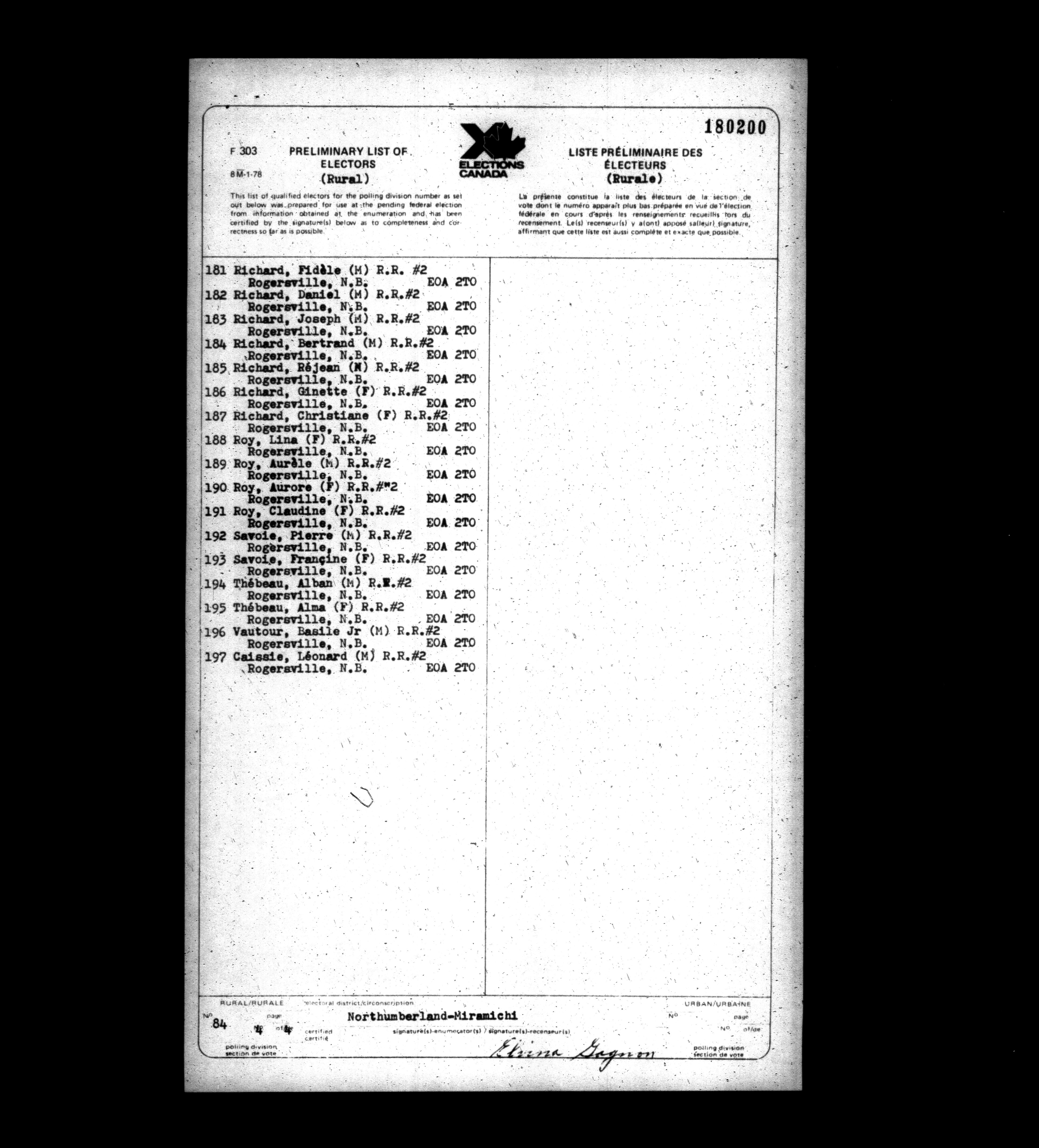 Voters' lists New Brunswick, 1979 - 662