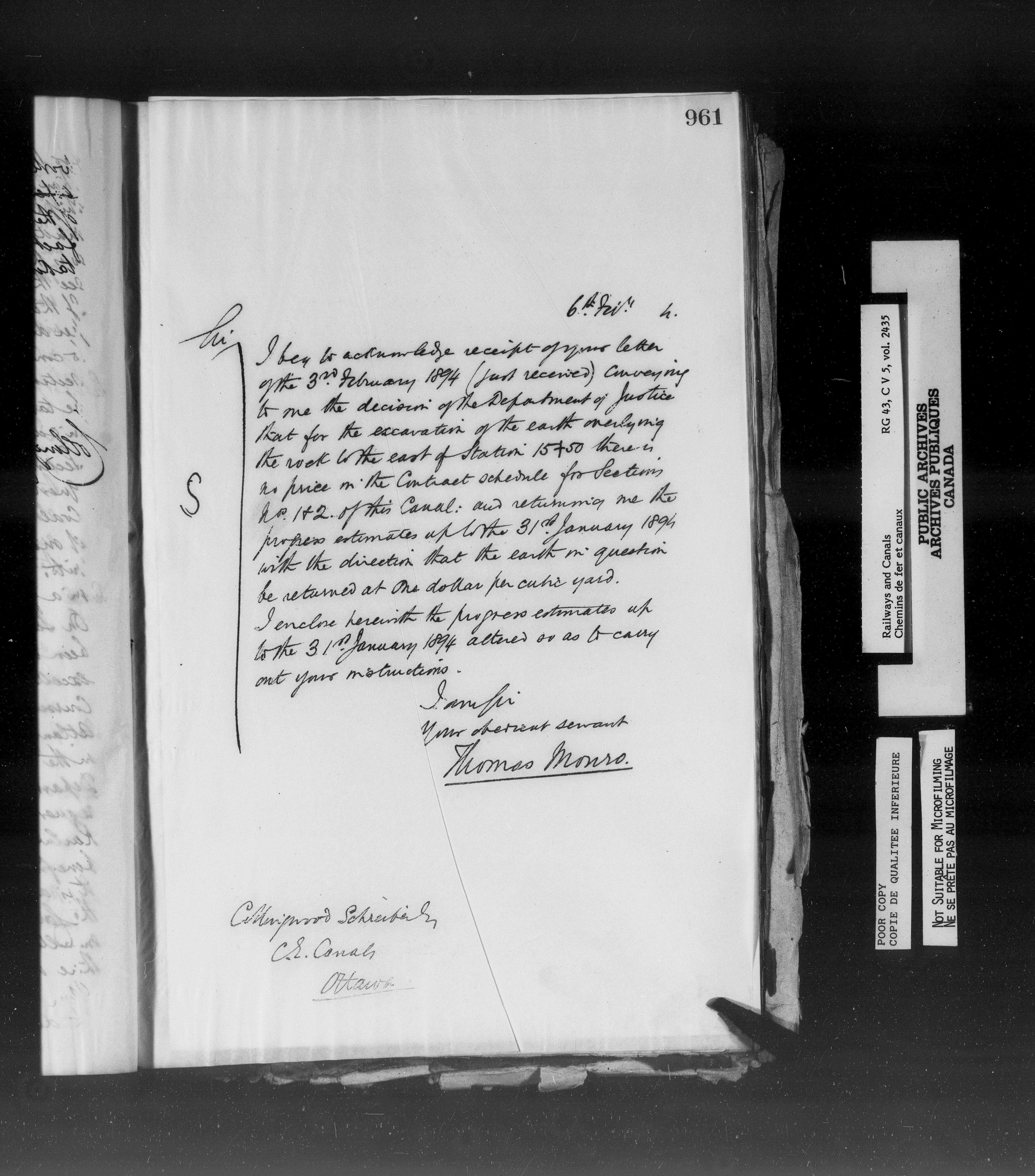 Letterbooks of the Office of the Superintending Engineer, Soulanges Canal, 1887-1903