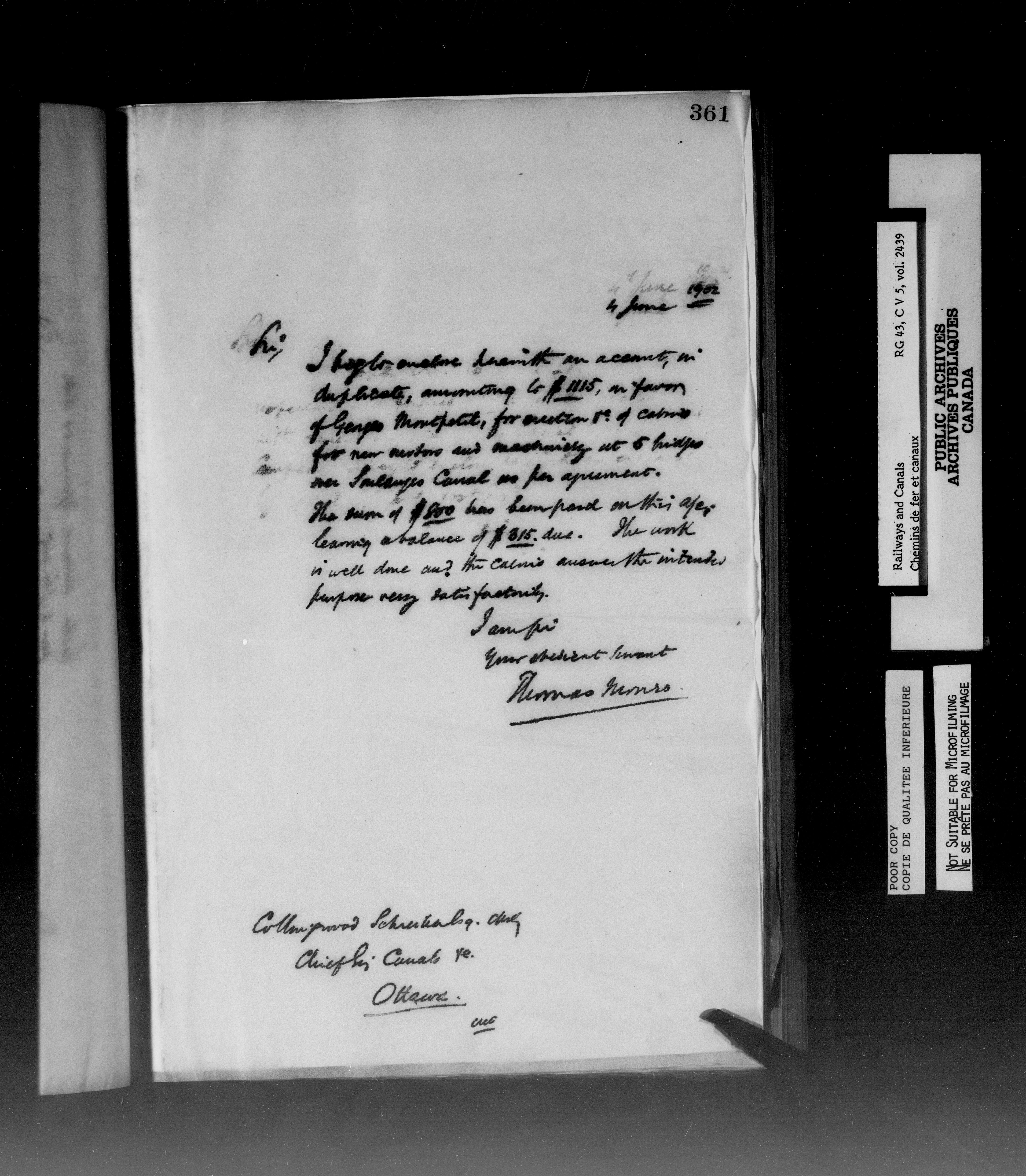 Letterbooks of the Office of the Superintending Engineer, Soulanges Canal, 1887-1903
