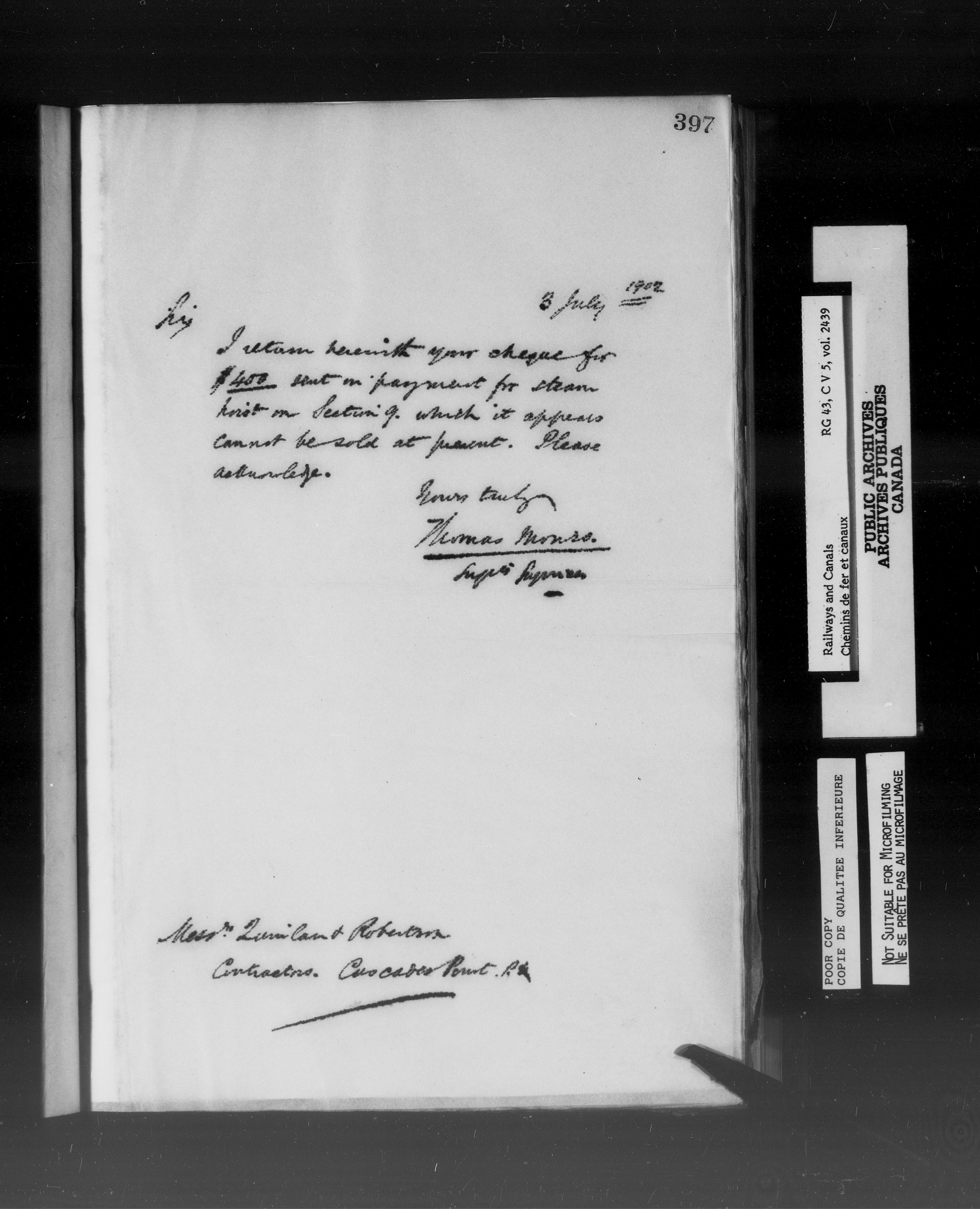 Letterbooks of the Office of the Superintending Engineer, Soulanges Canal, 1887-1903 - URL pérenne