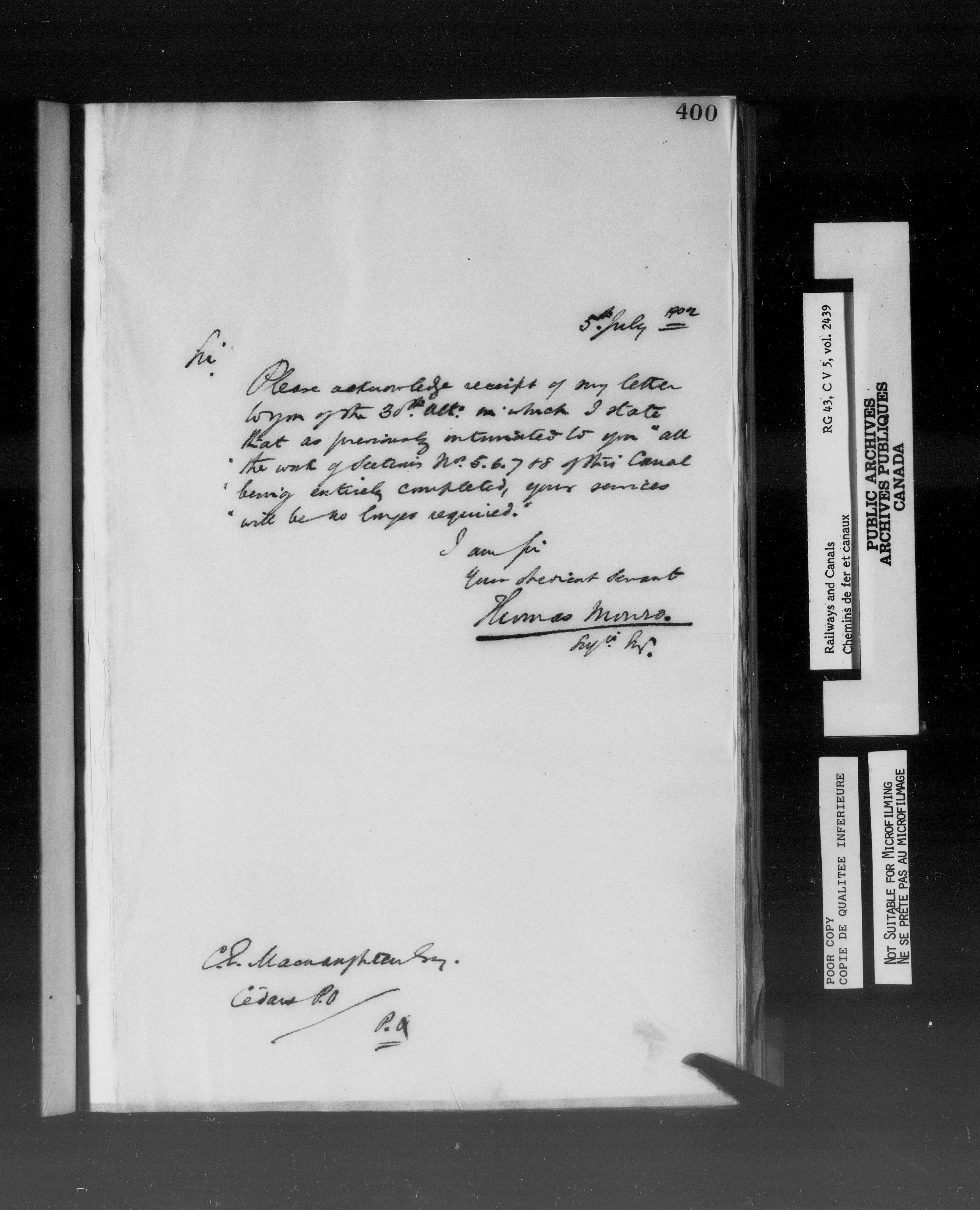 Letterbooks of the Office of the Superintending Engineer, Soulanges Canal, 1887-1903 - URL pérenne