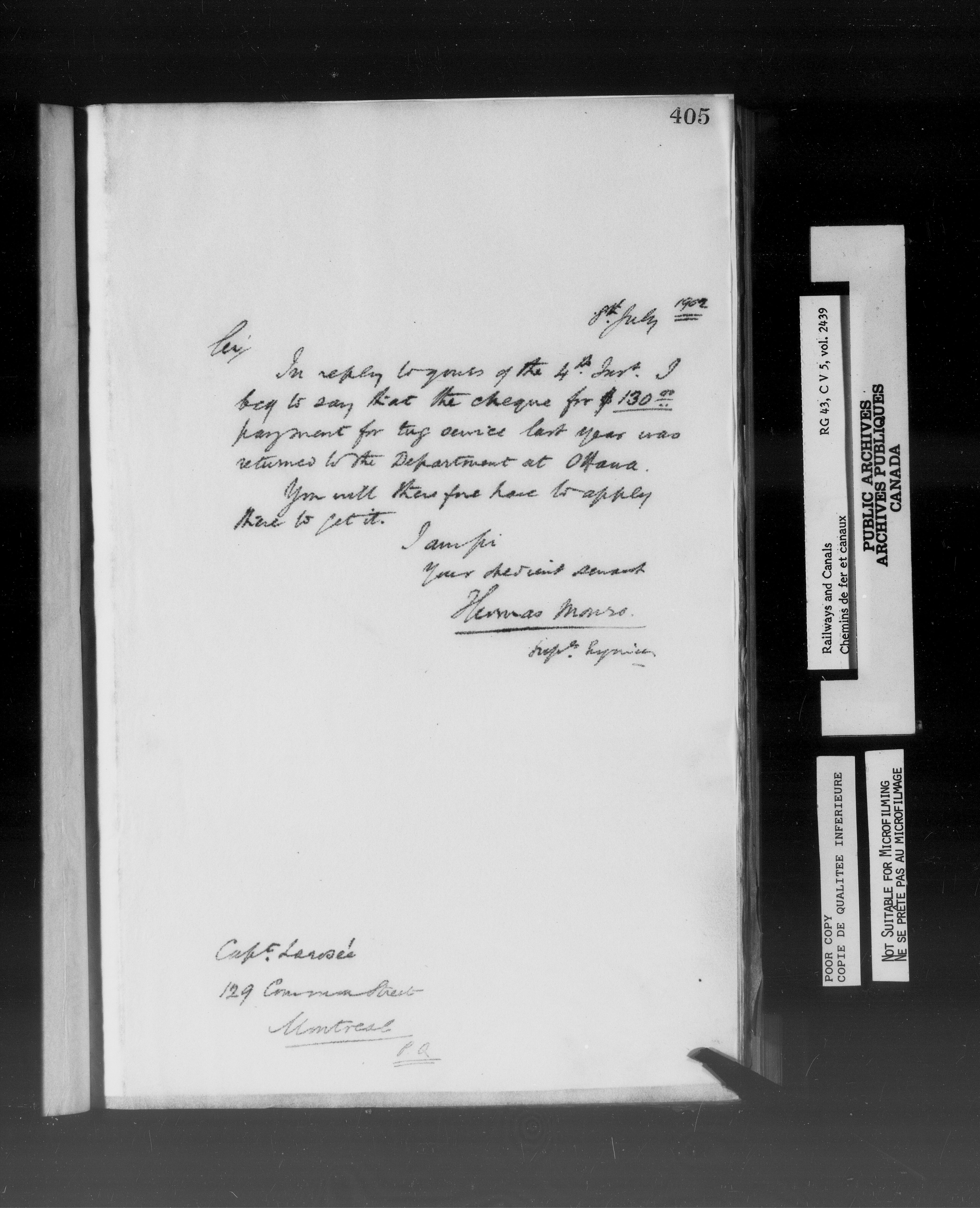 Letterbooks of the Office of the Superintending Engineer, Soulanges Canal, 1887-1903 - Persistent URL