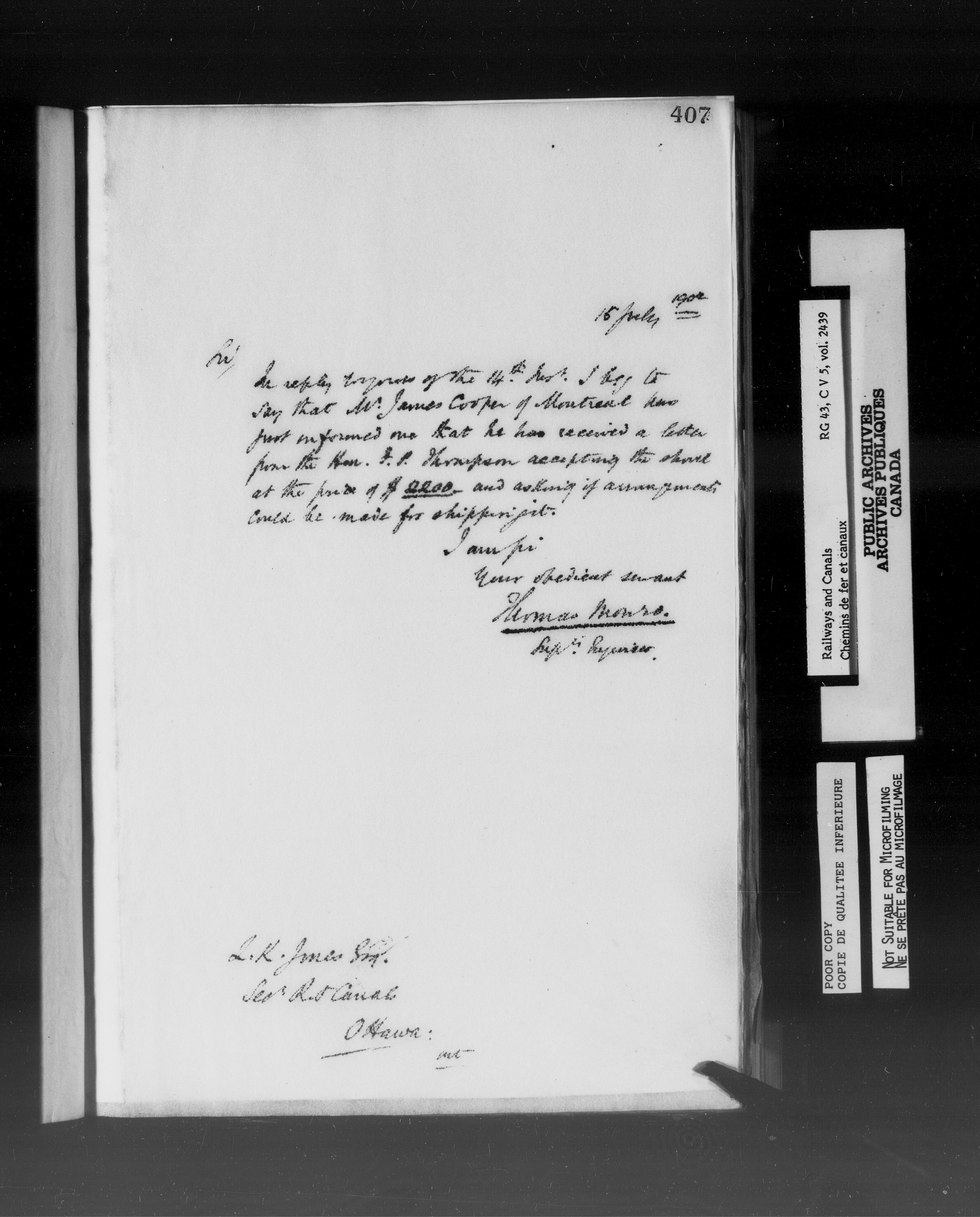 Letterbooks of the Office of the Superintending Engineer, Soulanges Canal, 1887-1903 - URL pérenne
