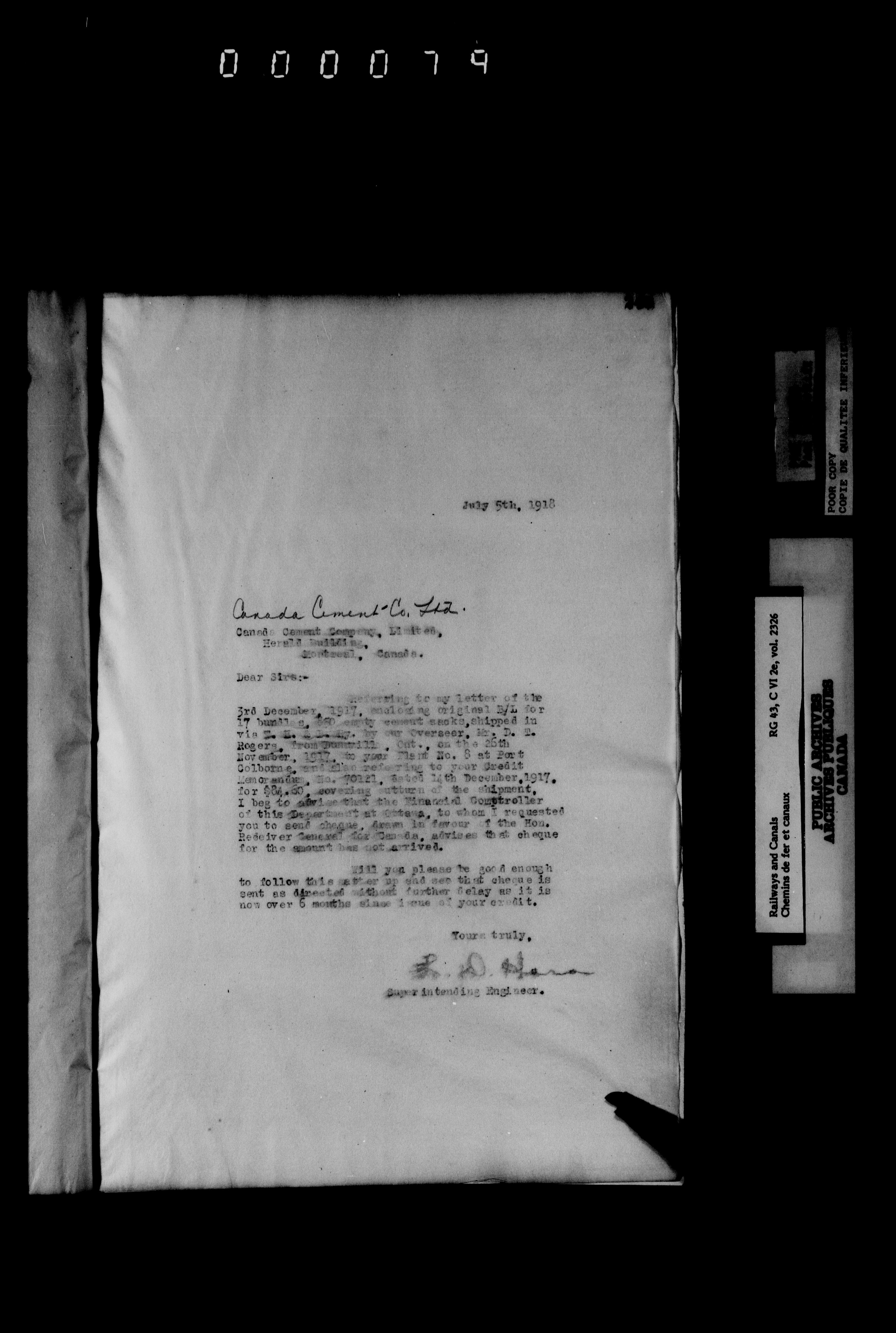 General correspondence of the office of the engineer in charge of the Welland Canal - 6642