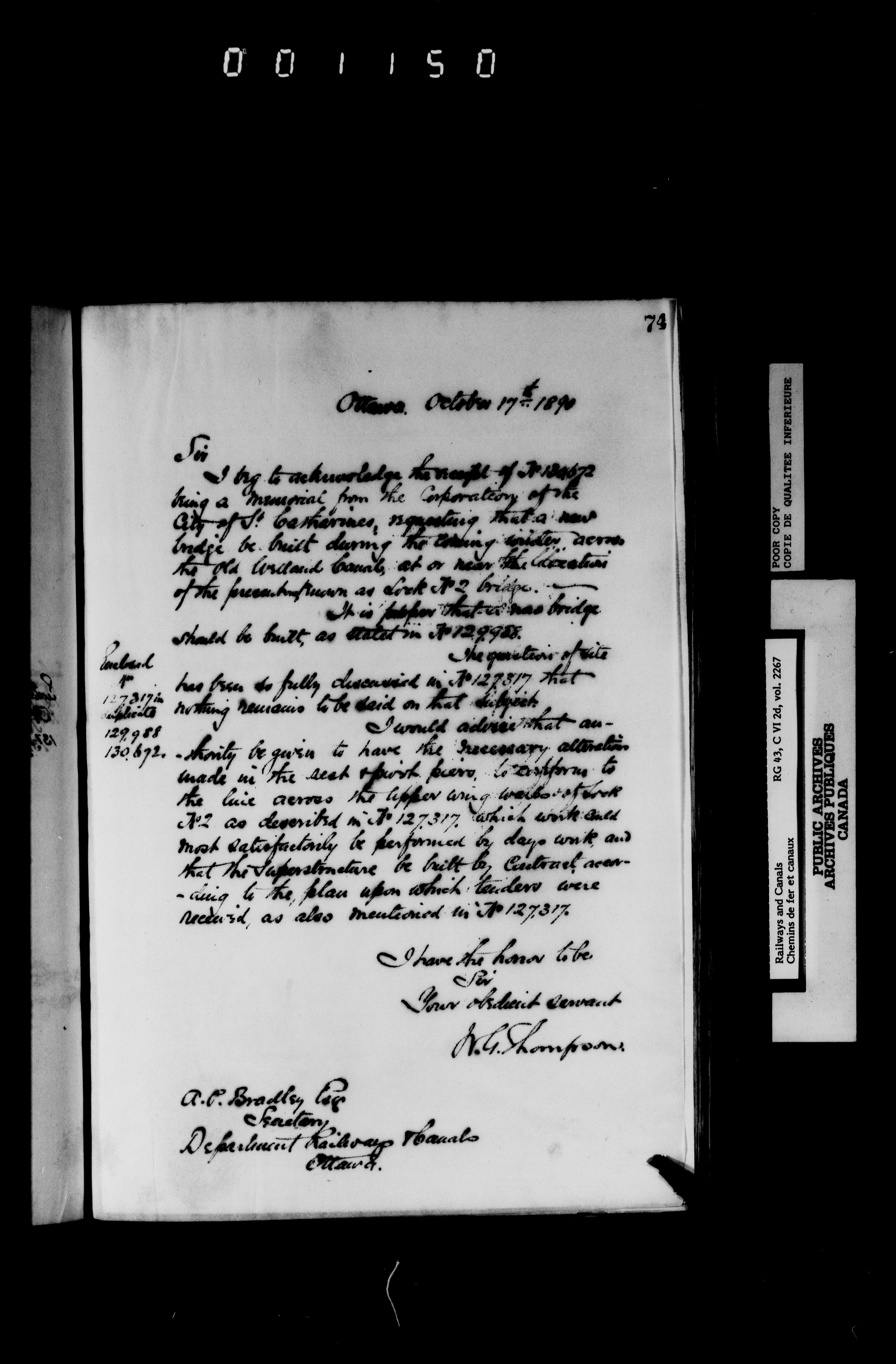General correspondence of the office of the engineer in charge of the Welland Canal - 6646