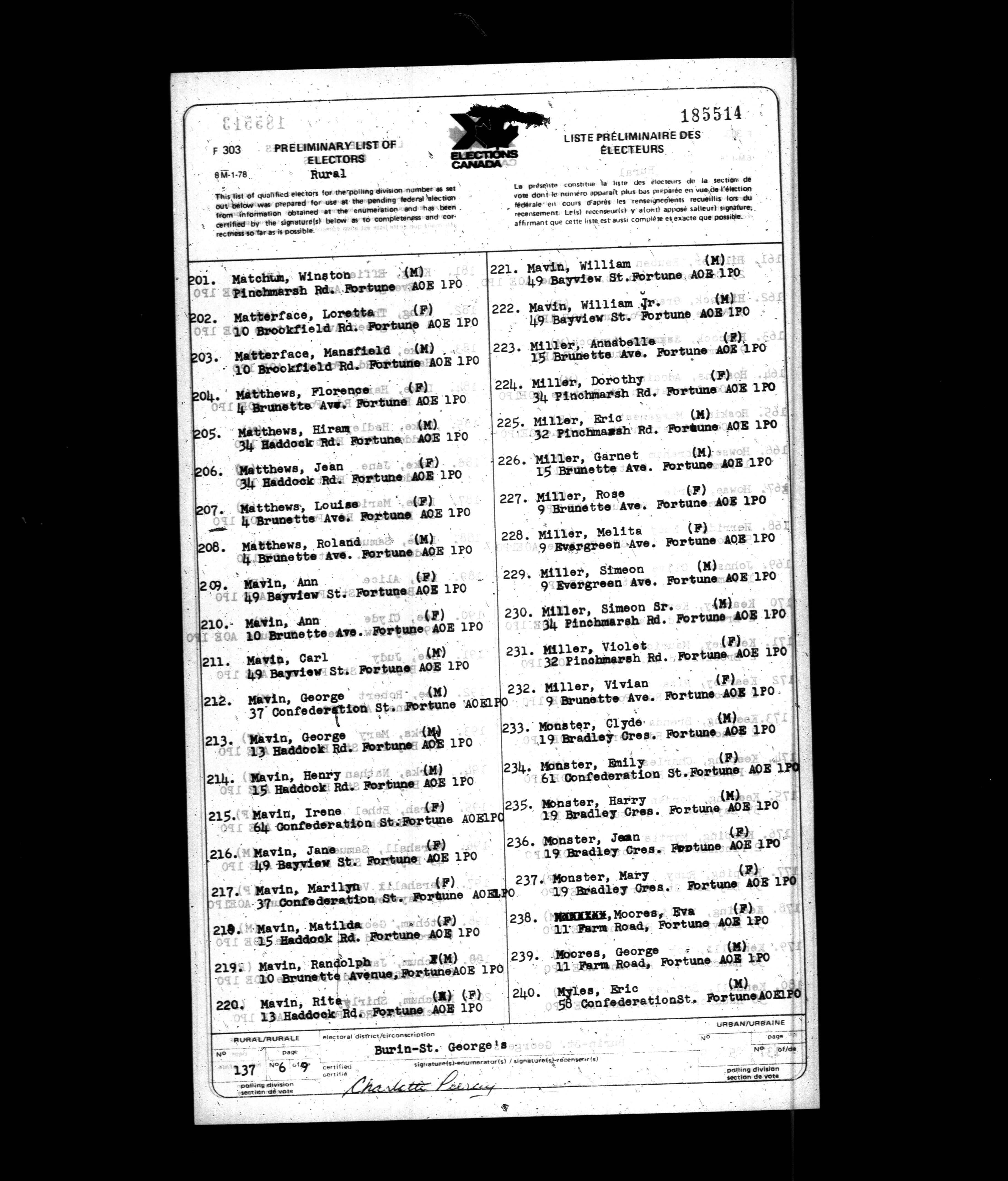 Office of the Chief Electoral Officer : Preliminary List of Electors : T-665