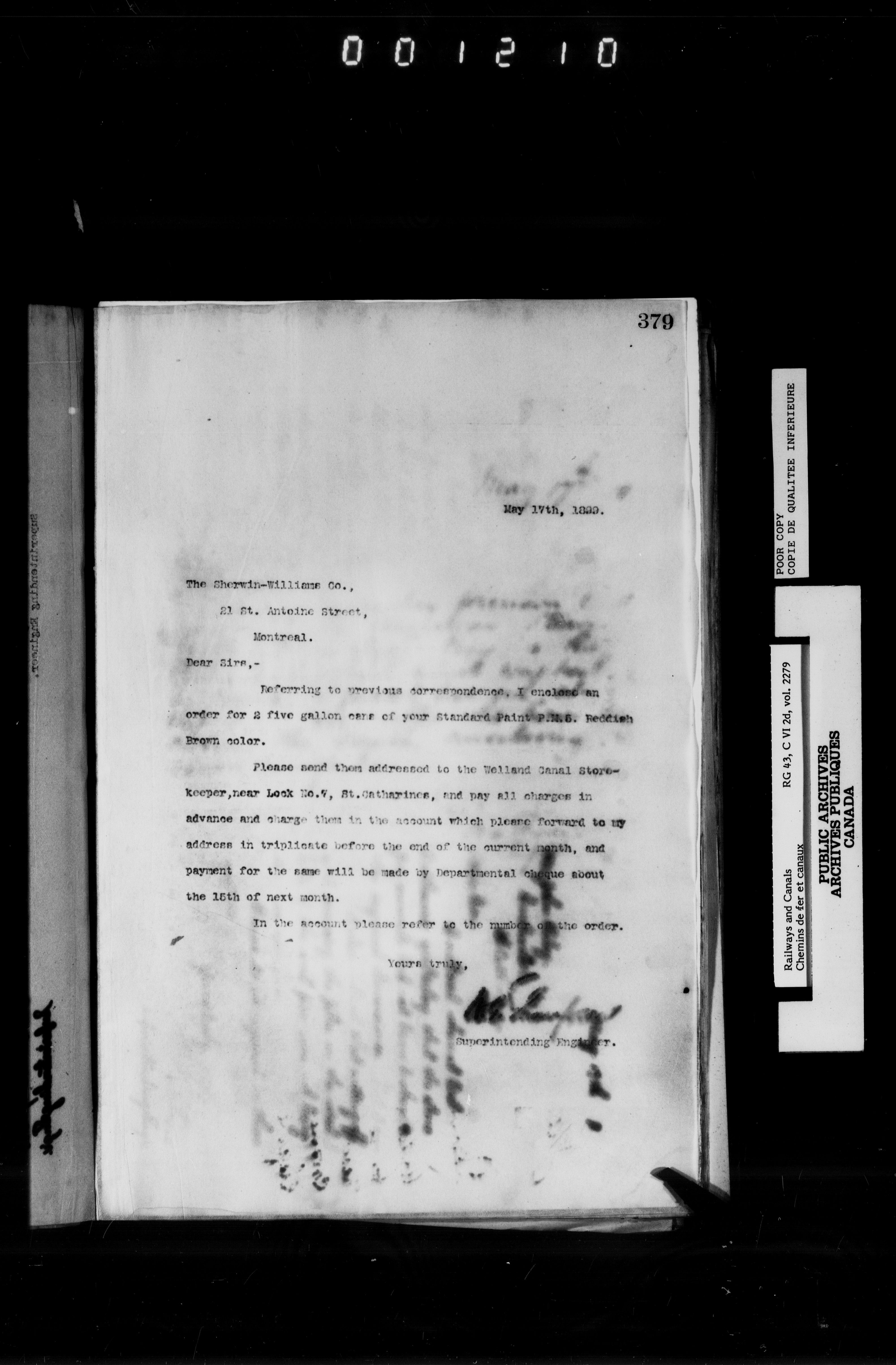 General correspondence of the office of the engineer in charge of the Welland Canal - 6651