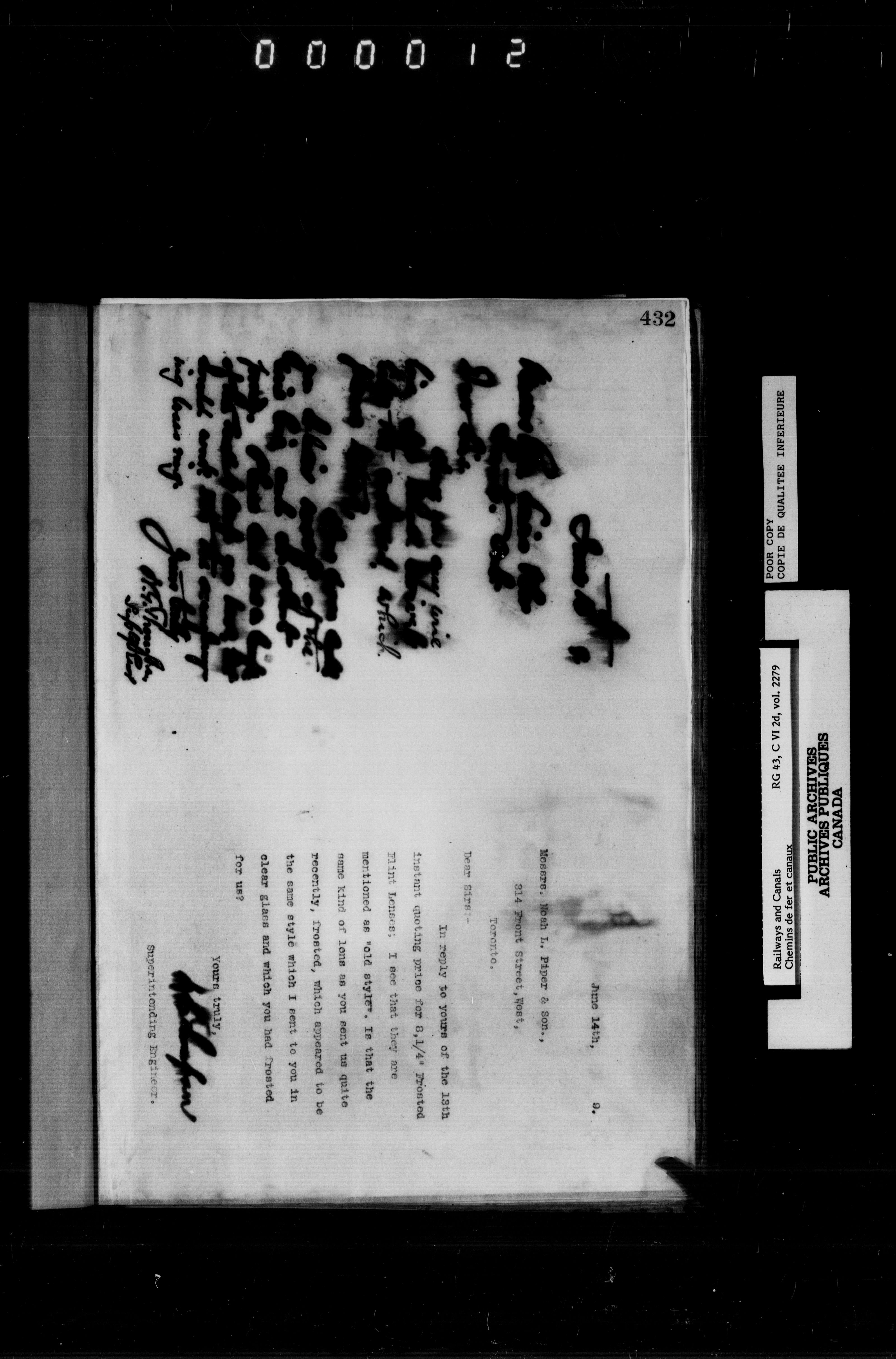 General correspondence of the office of the engineer in charge of the Welland Canal - 6652