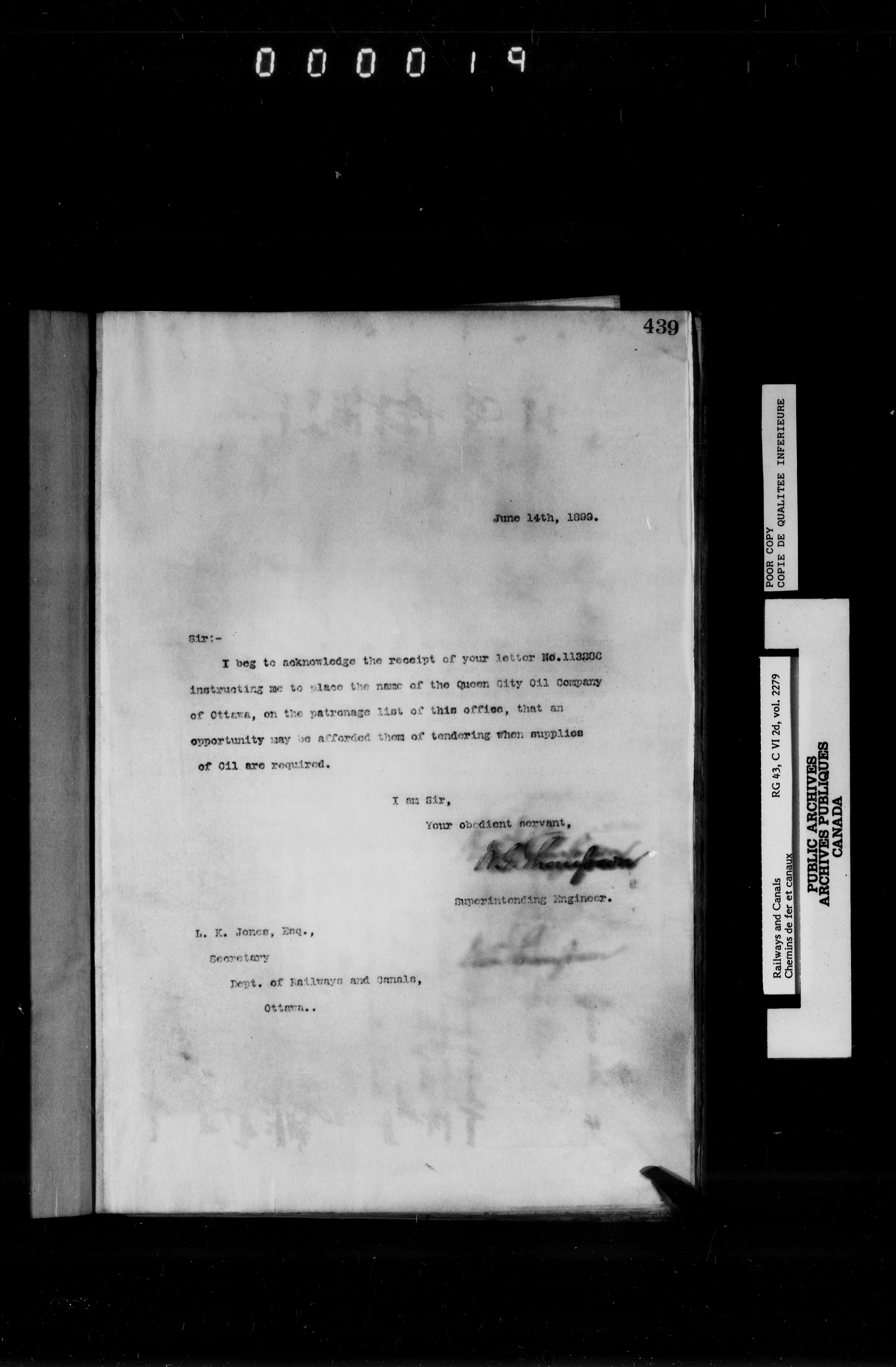 General correspondence of the office of the engineer in charge of the Welland Canal - 6652