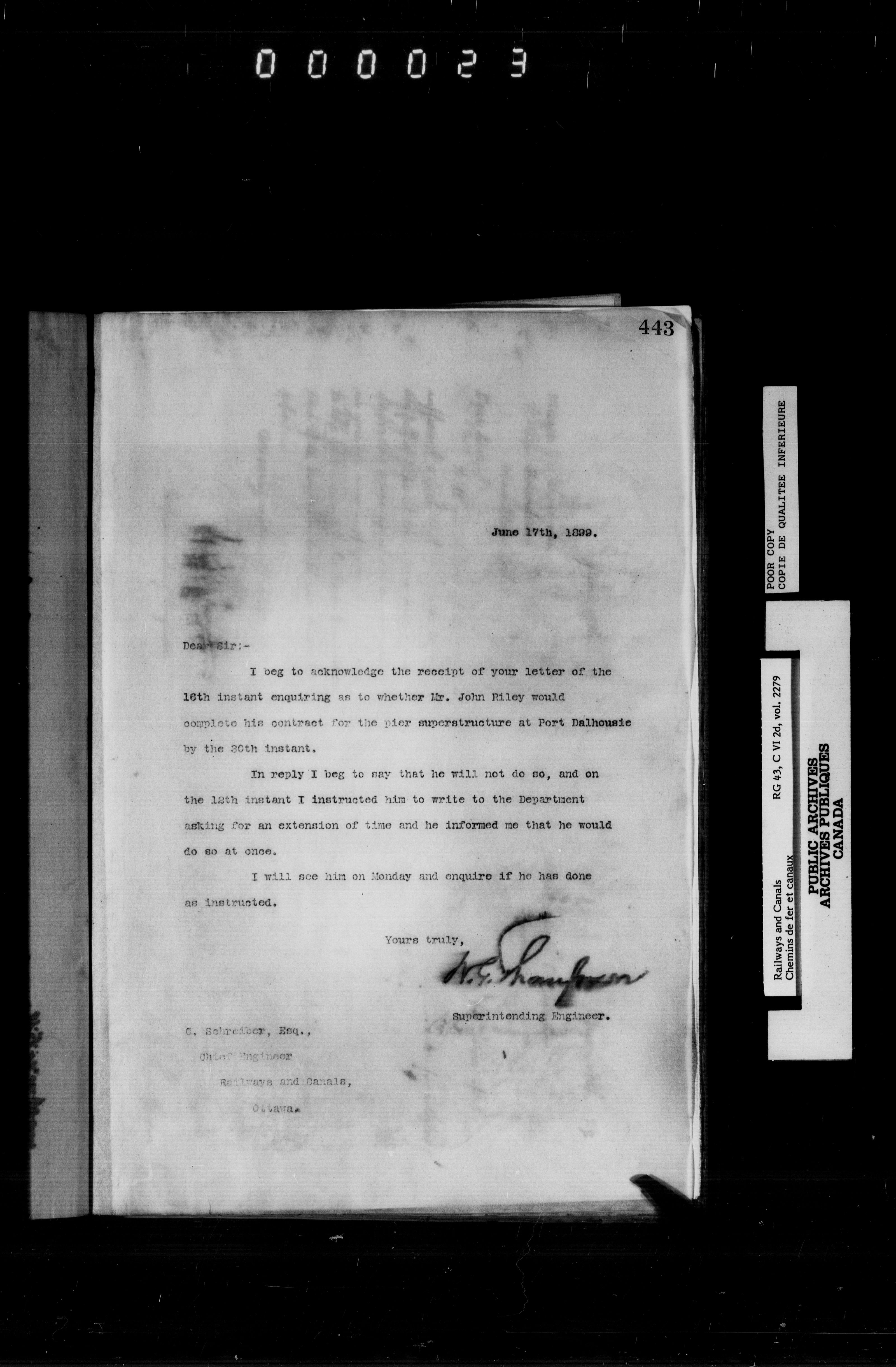 General correspondence of the office of the engineer in charge of the Welland Canal - 6652