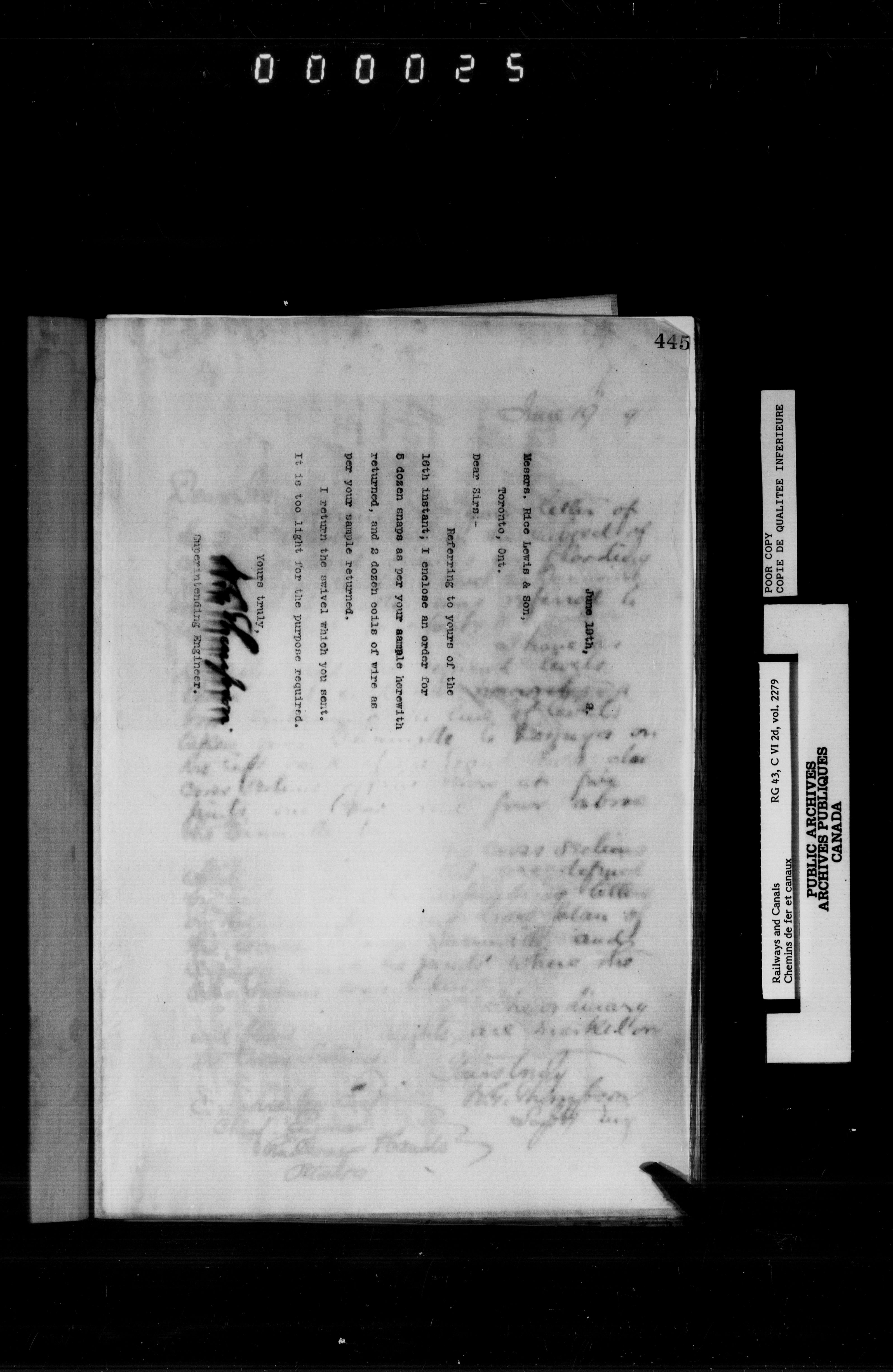 General correspondence of the office of the engineer in charge of the Welland Canal - 6652