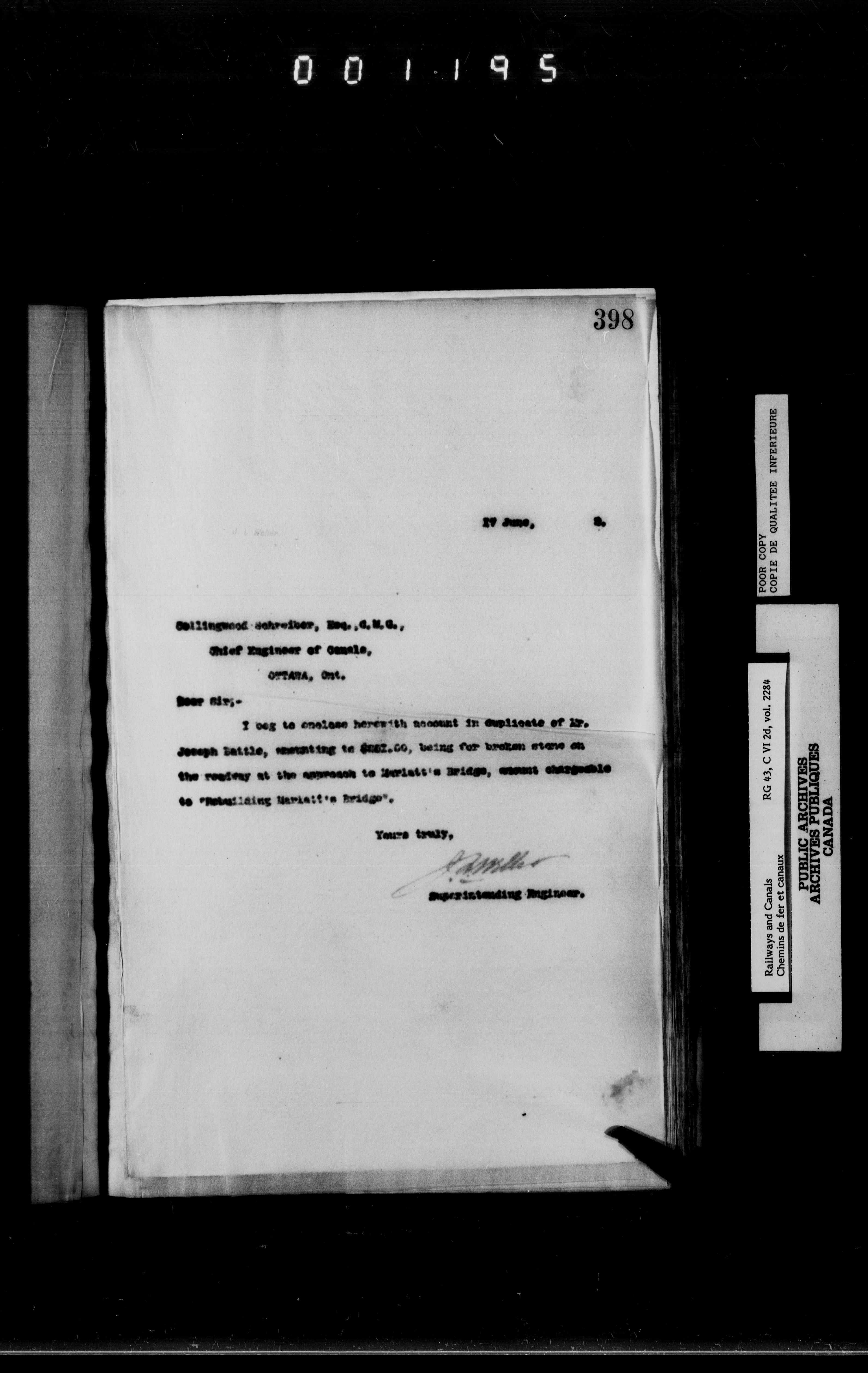 General correspondence of the office of the engineer in charge of the Welland Canal - 6654