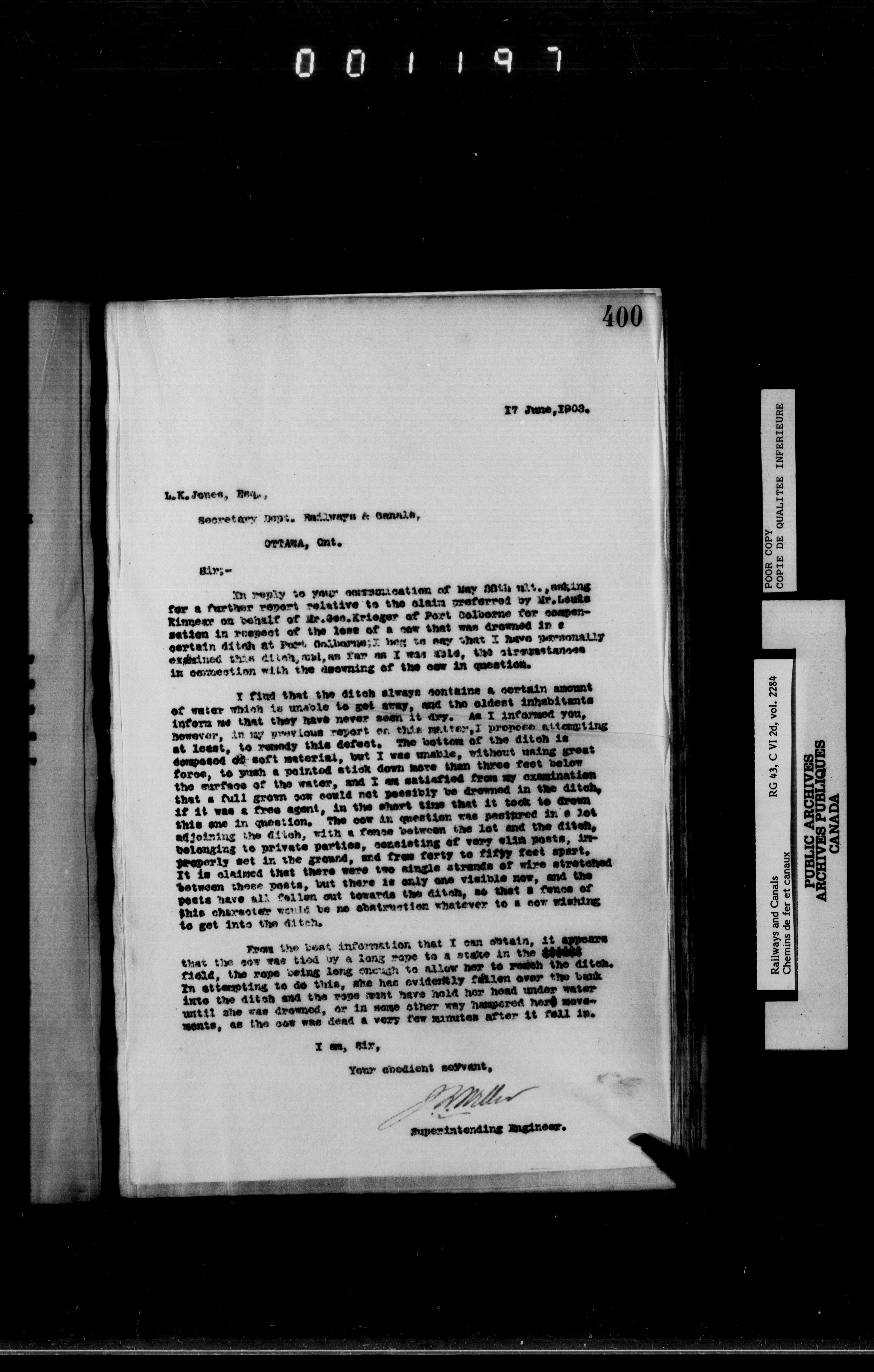 General correspondence of the office of the engineer in charge of the Welland Canal - 6654
