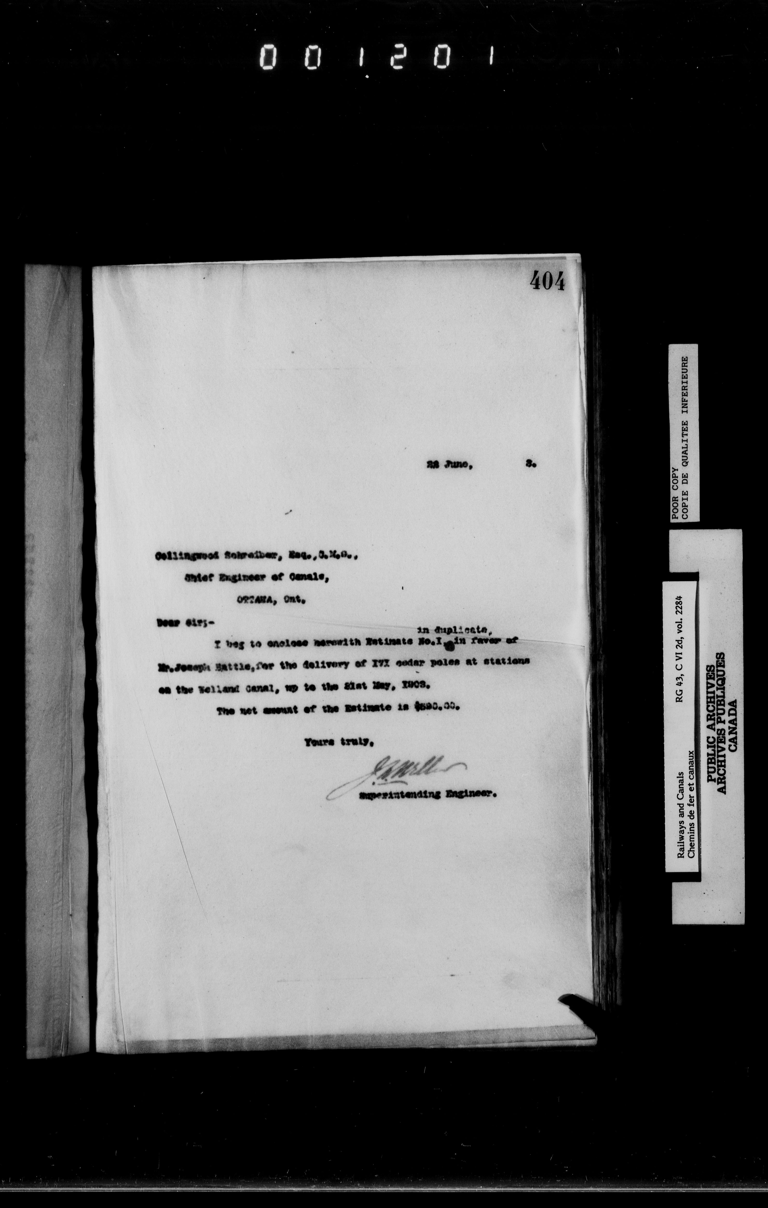 General correspondence of the office of the engineer in charge of the Welland Canal - 6654