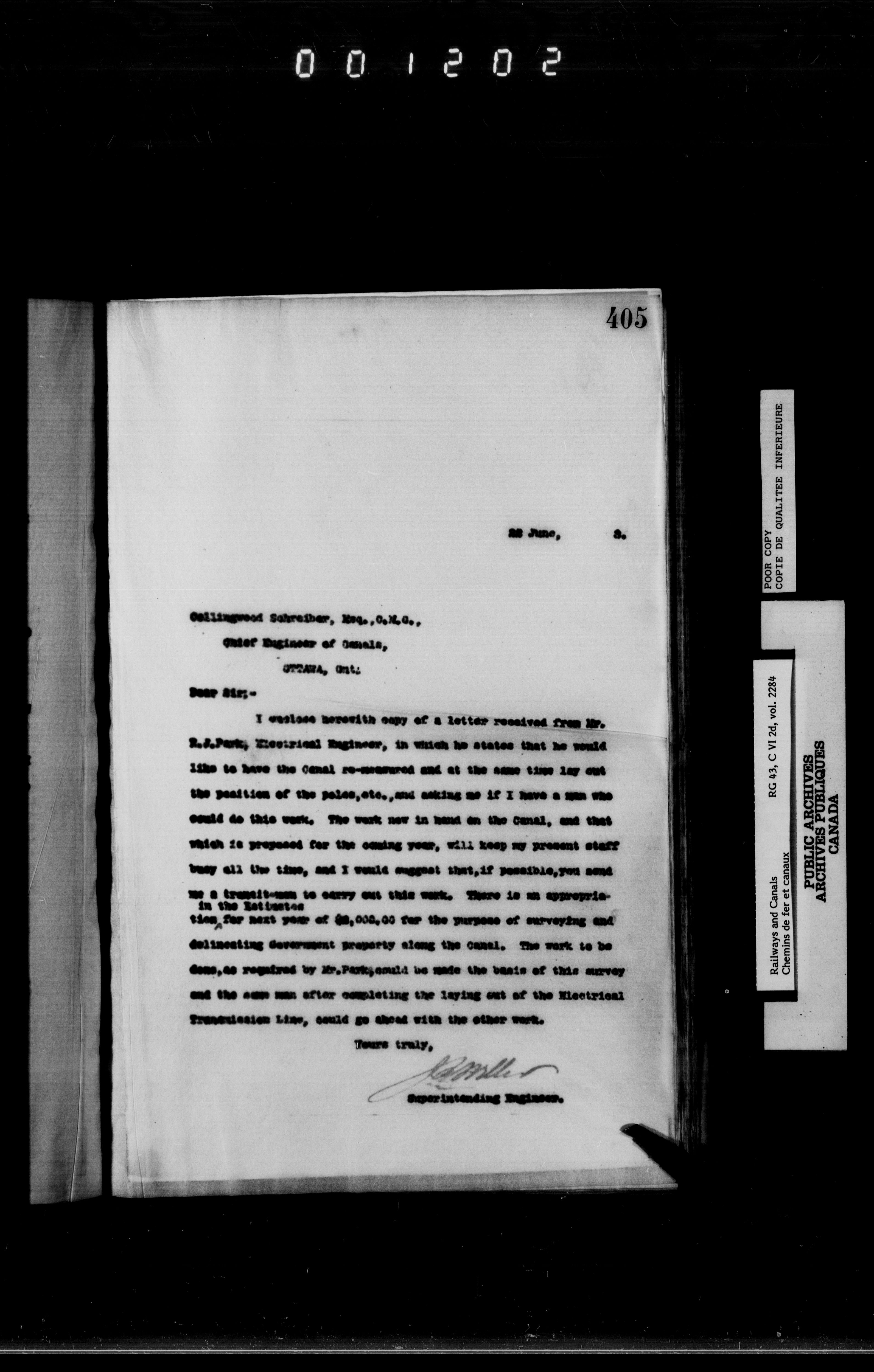 General correspondence of the office of the engineer in charge of the Welland Canal - 6654