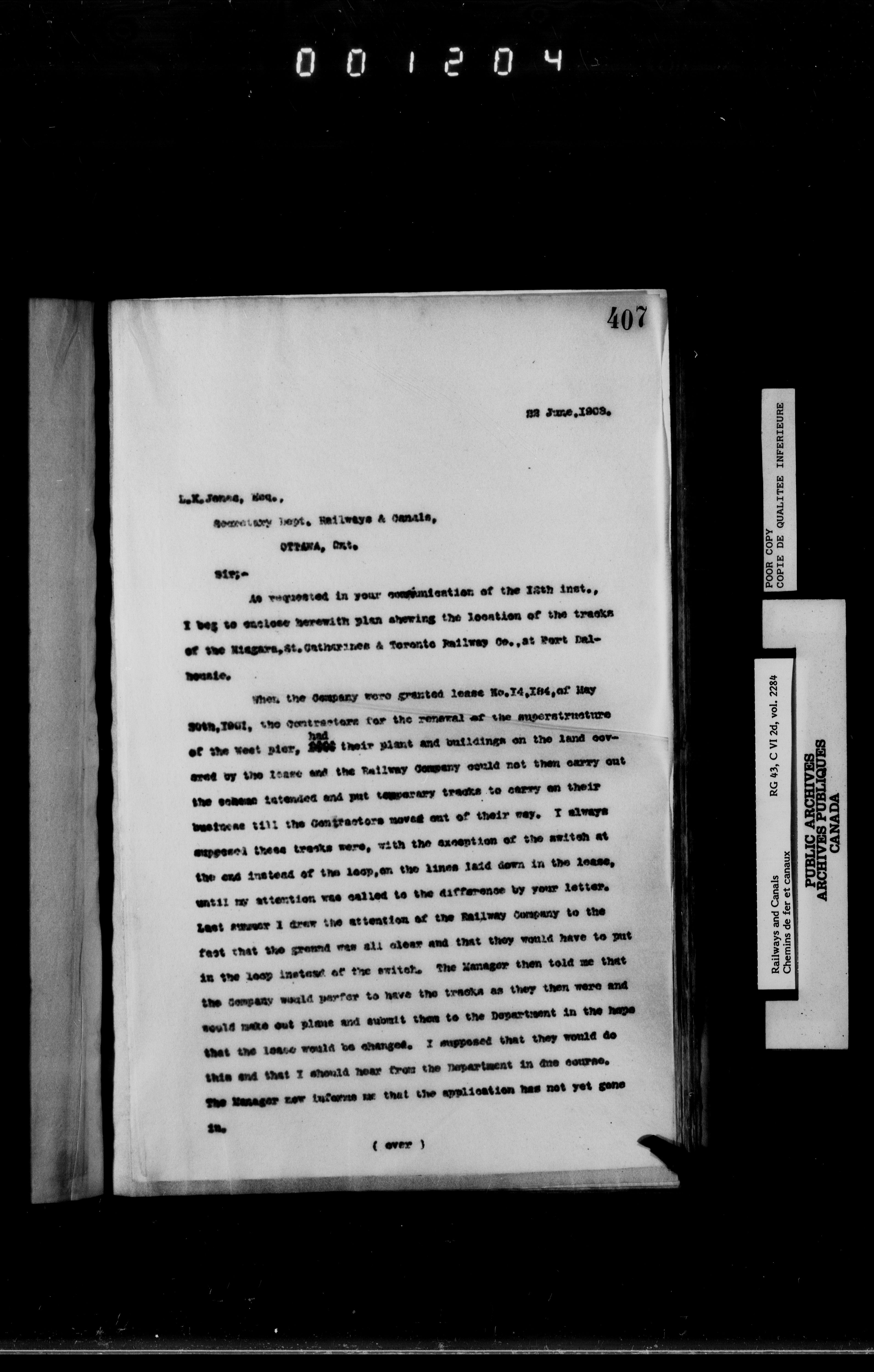 General correspondence of the office of the engineer in charge of the Welland Canal - 6654
