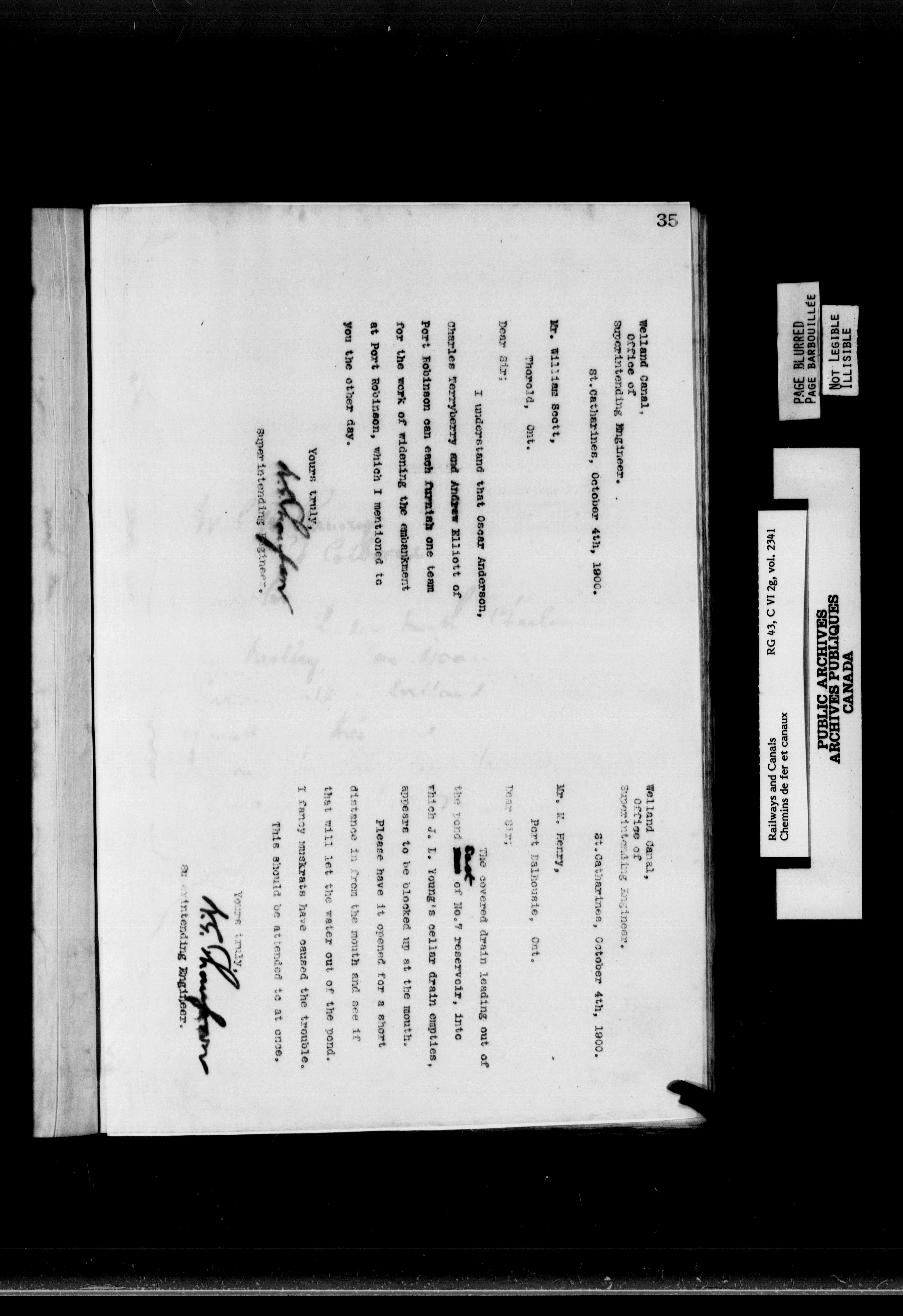 General correspondence of the office of the engineer in charge of the Welland Canal - 6871