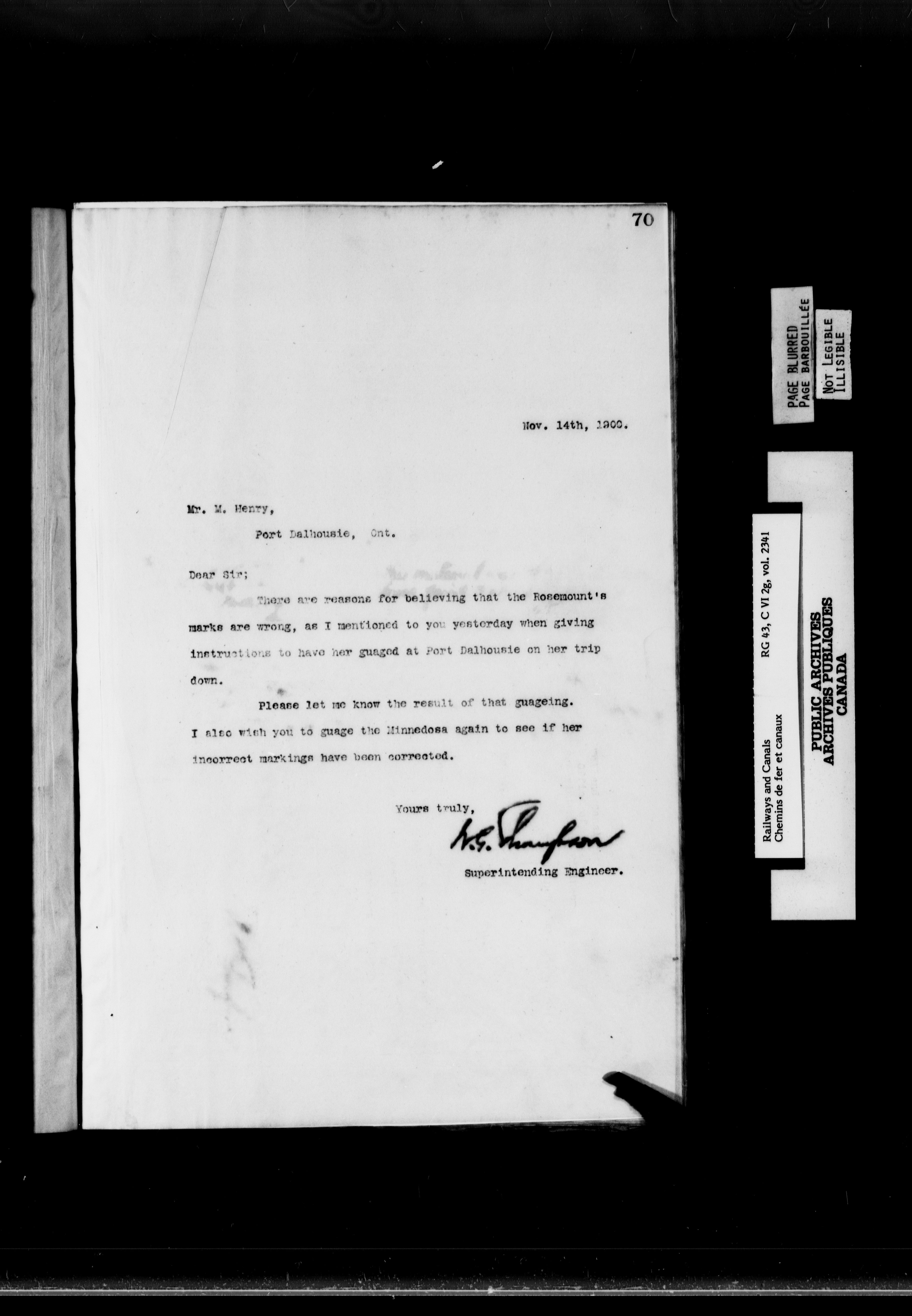 General correspondence of the office of the engineer in charge of the Welland Canal - 6871
