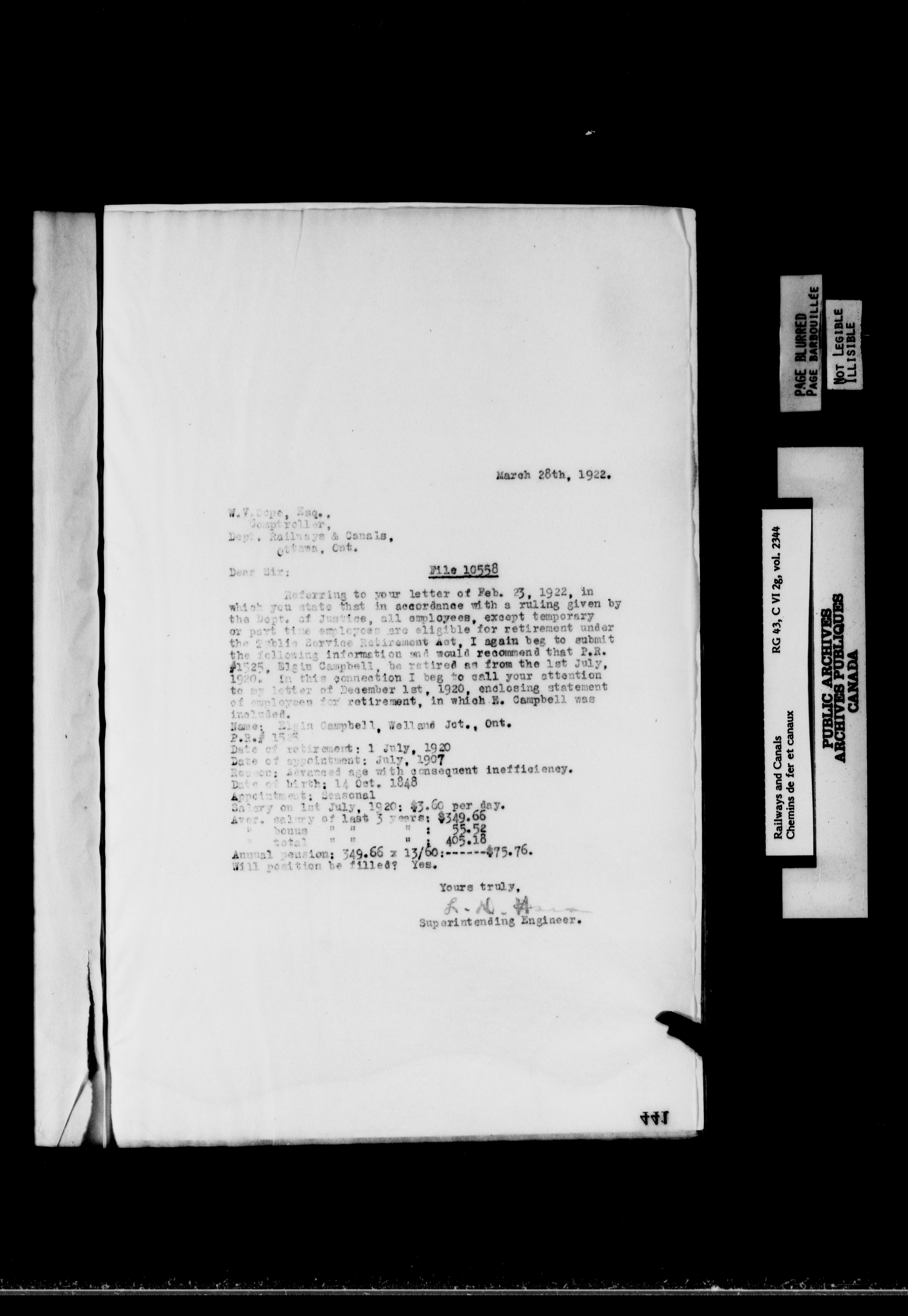 Department of Railways and Canals : Records related to Welland Canal : T-6872
