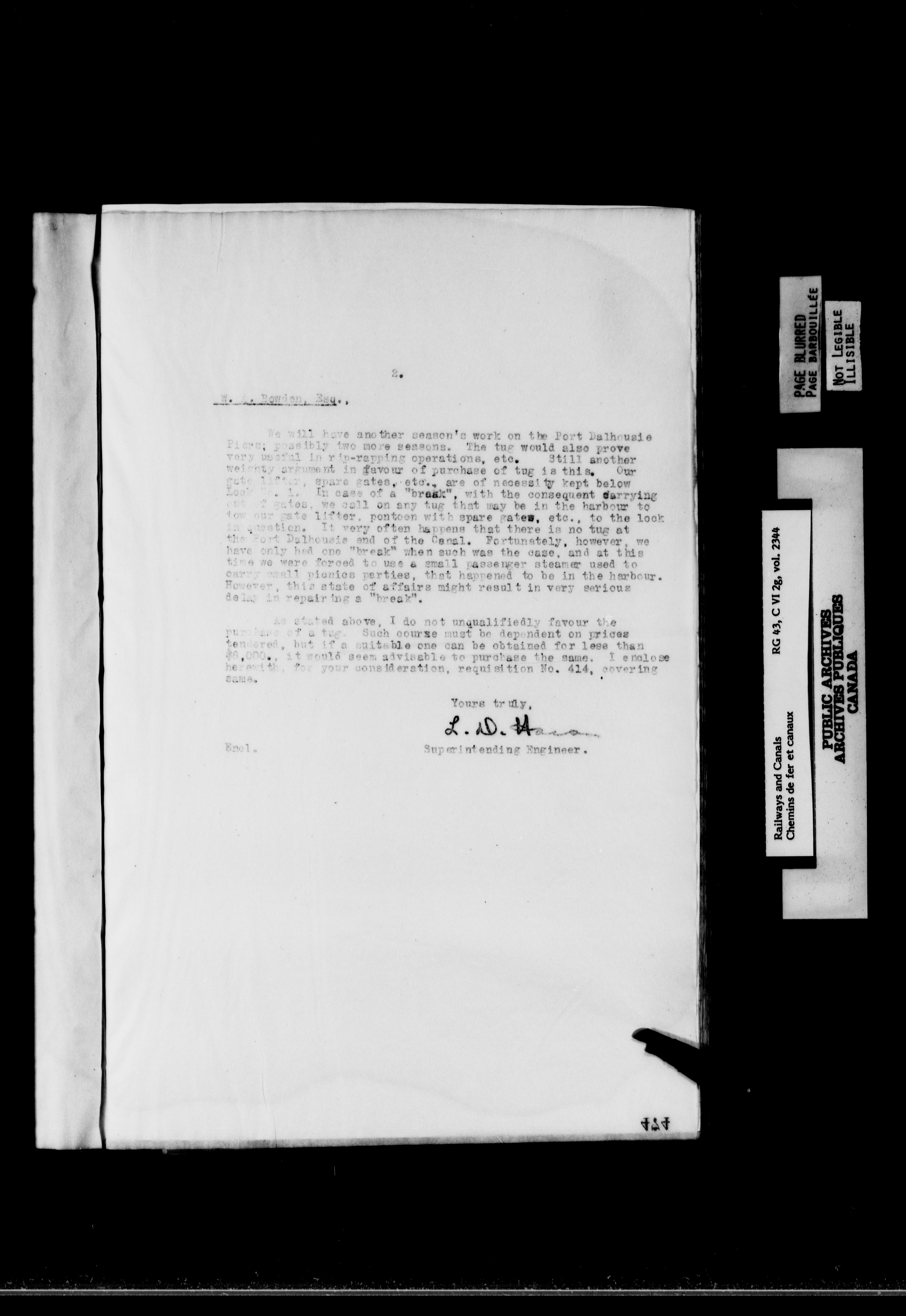 General correspondence of the office of the engineer in charge of the Welland Canal - 6872