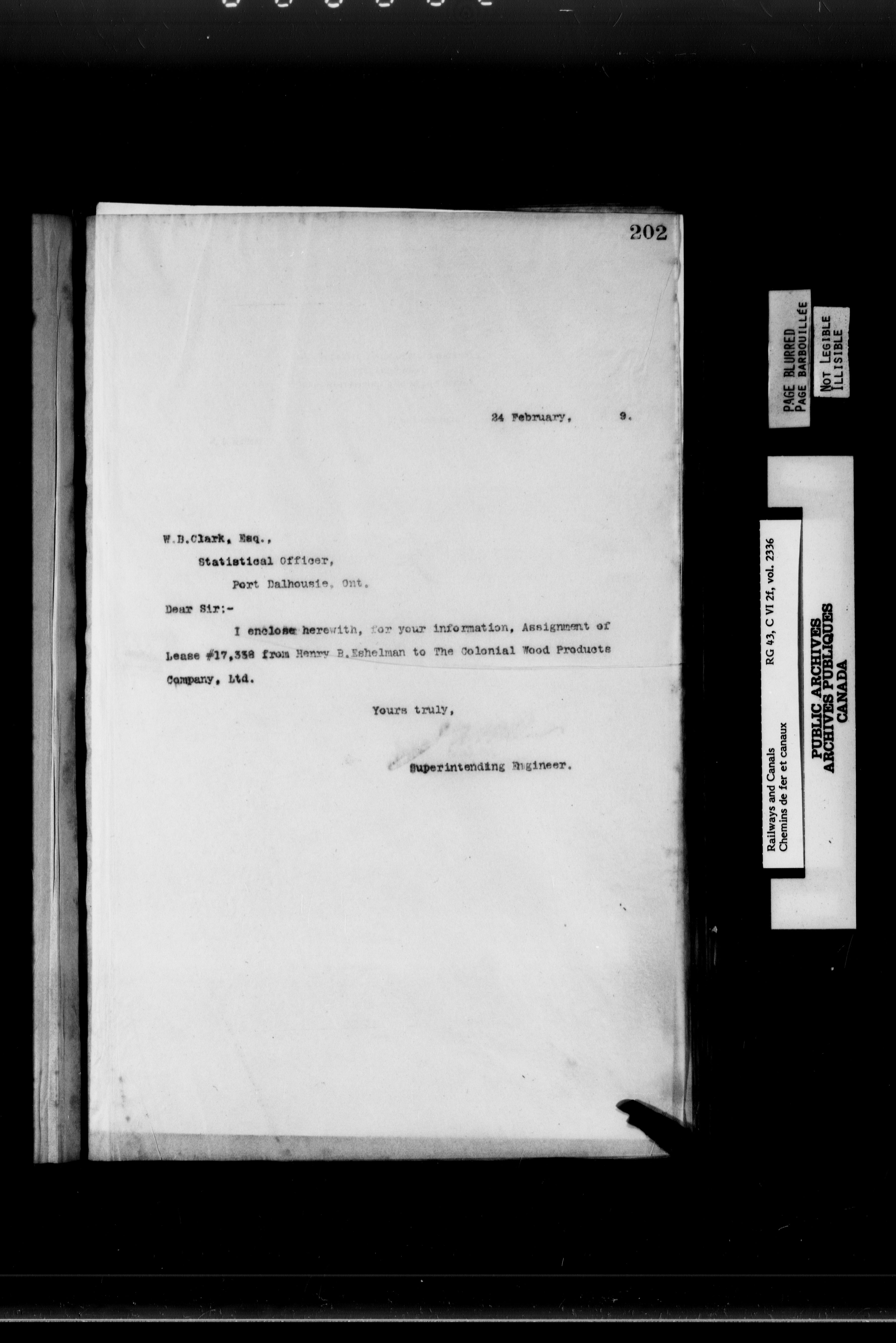 General correspondence of the office of the engineer in charge of the Welland Canal - 6876