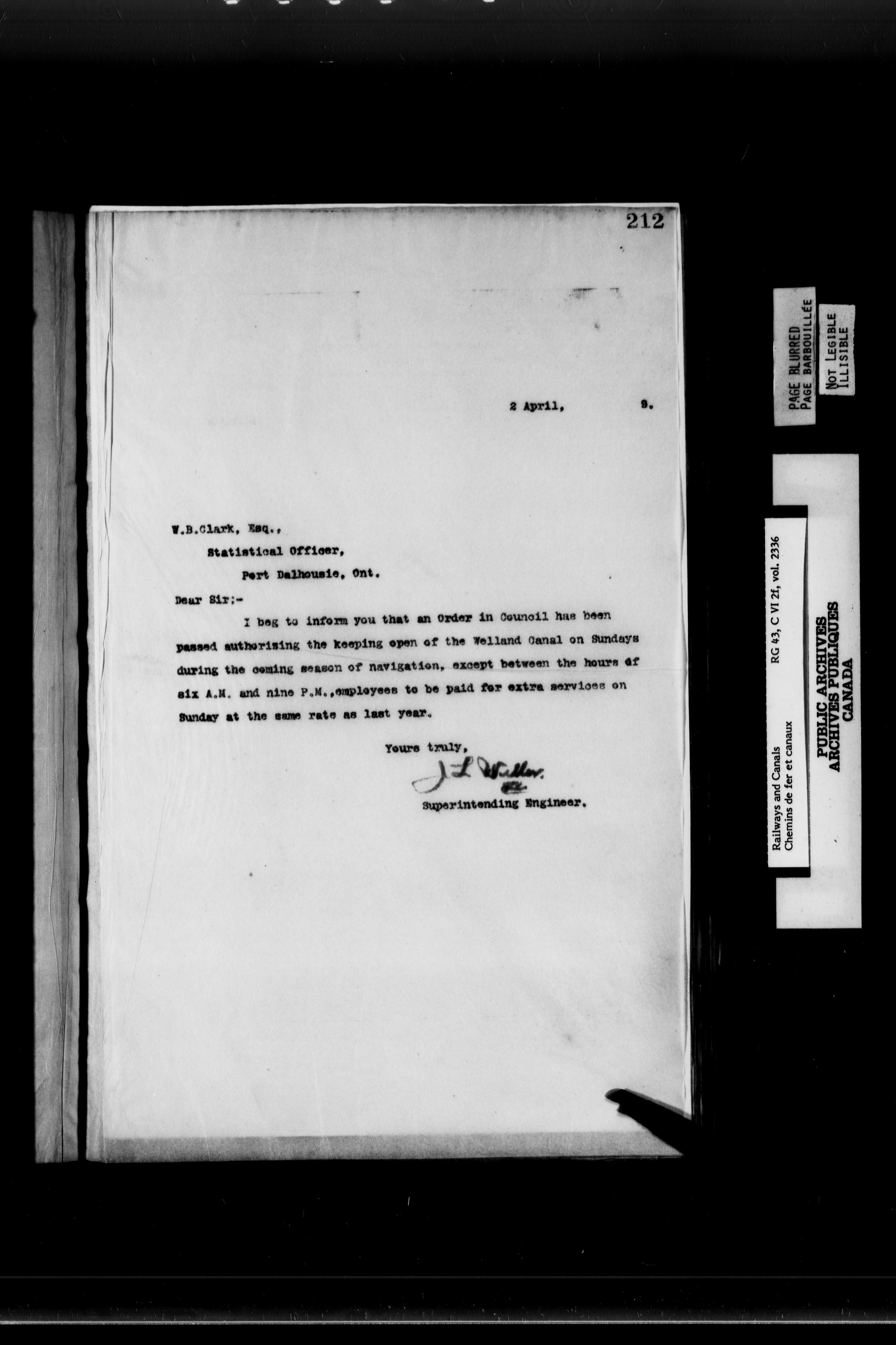 General correspondence of the office of the engineer in charge of the Welland Canal - 6876