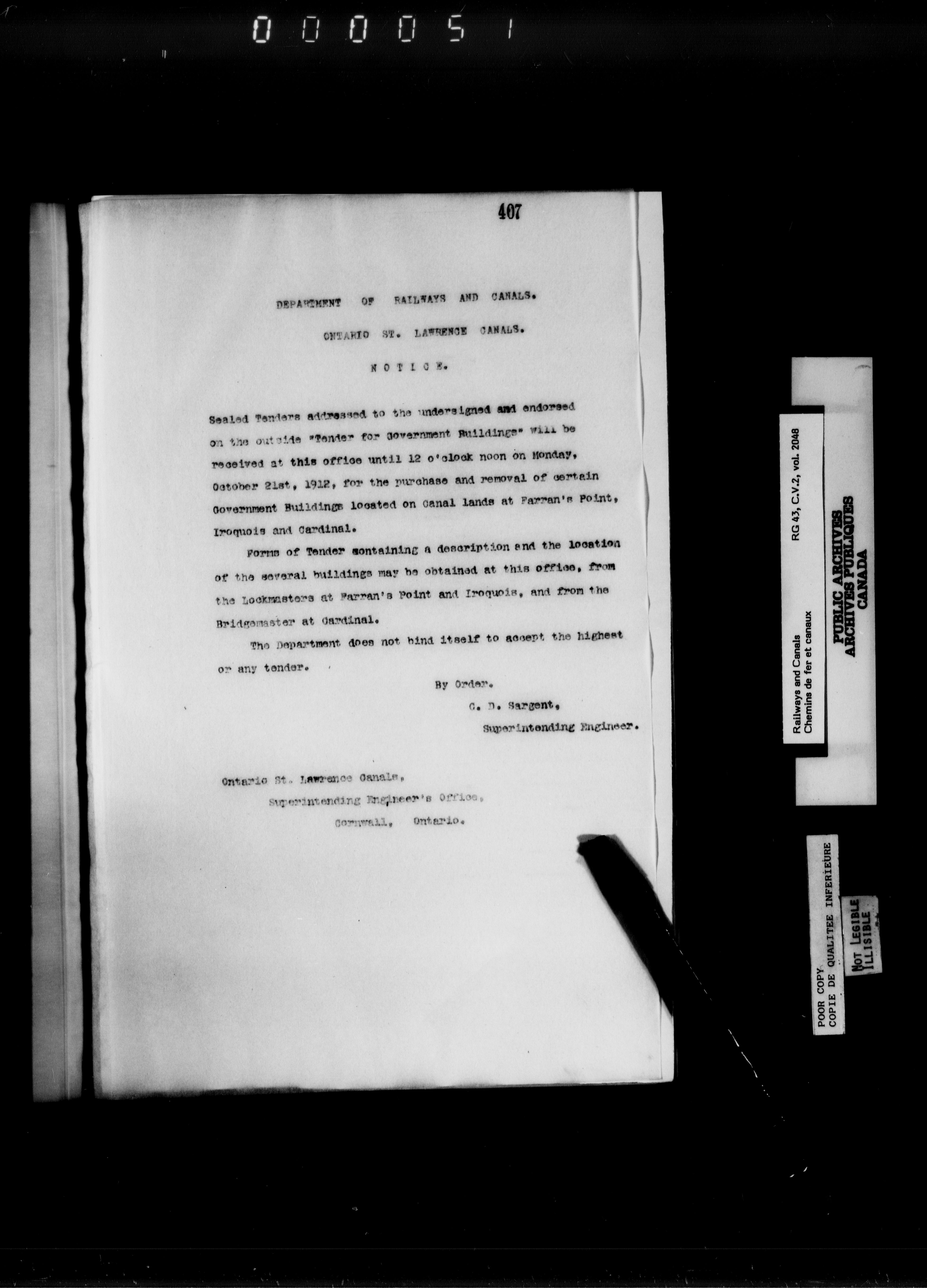 Department of Railways and Canals: Records related to the St. Lawrence Canals : T-6884