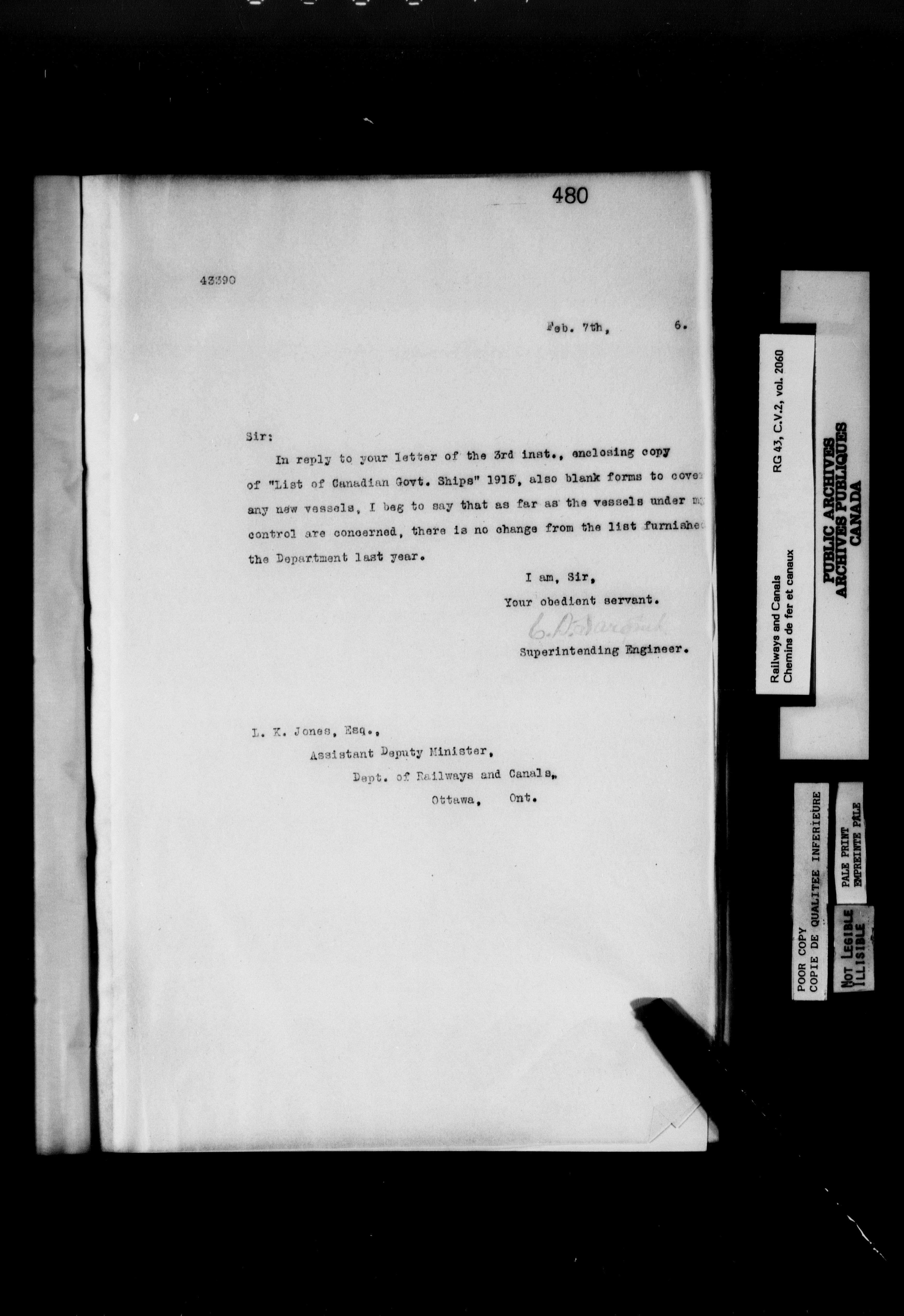 Department of Railways and Canals: Records related to the St. Lawrence Canals : T-6889