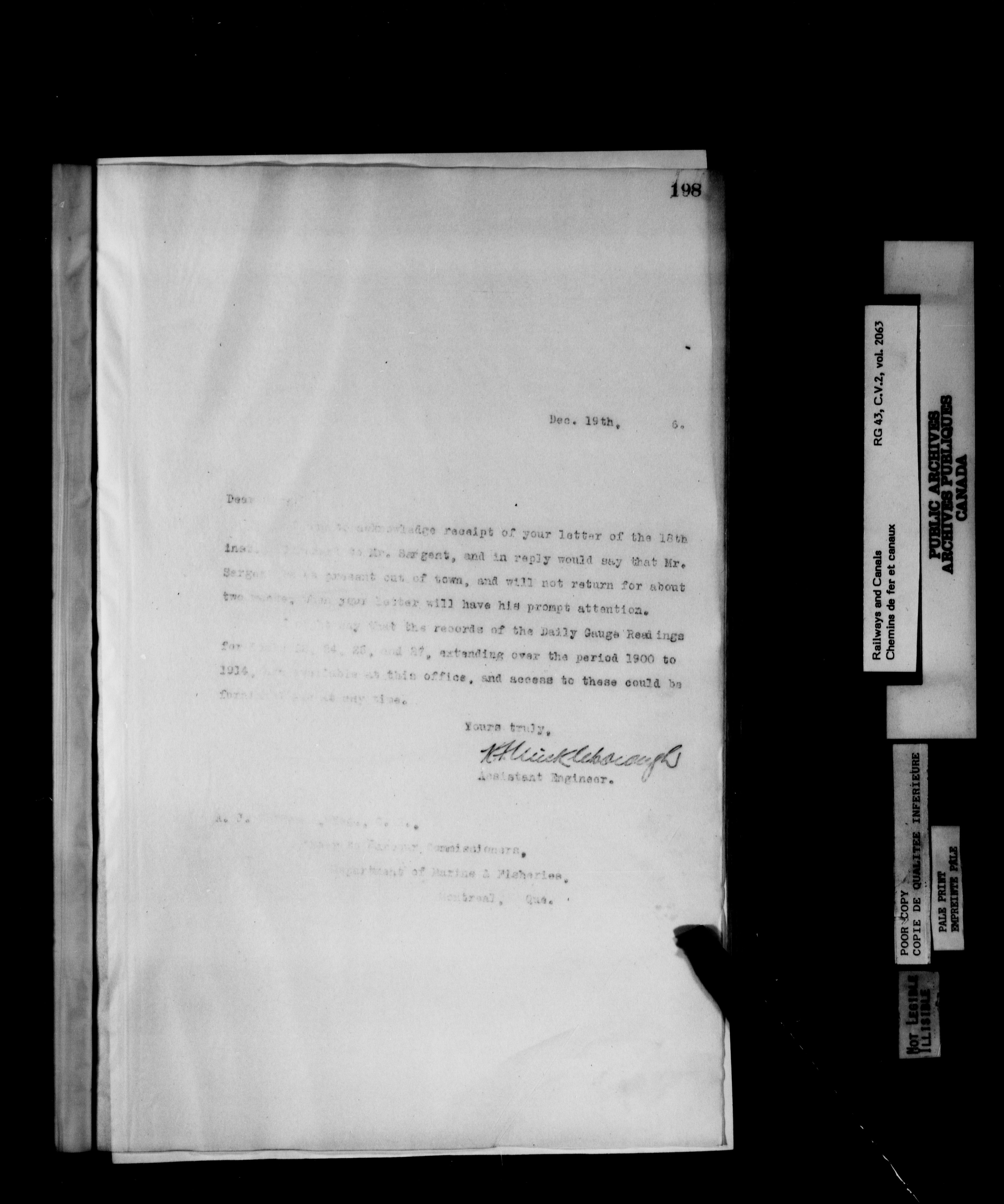 Department of Railways and Canals: Records related to the St. Lawrence Canals : T-6890