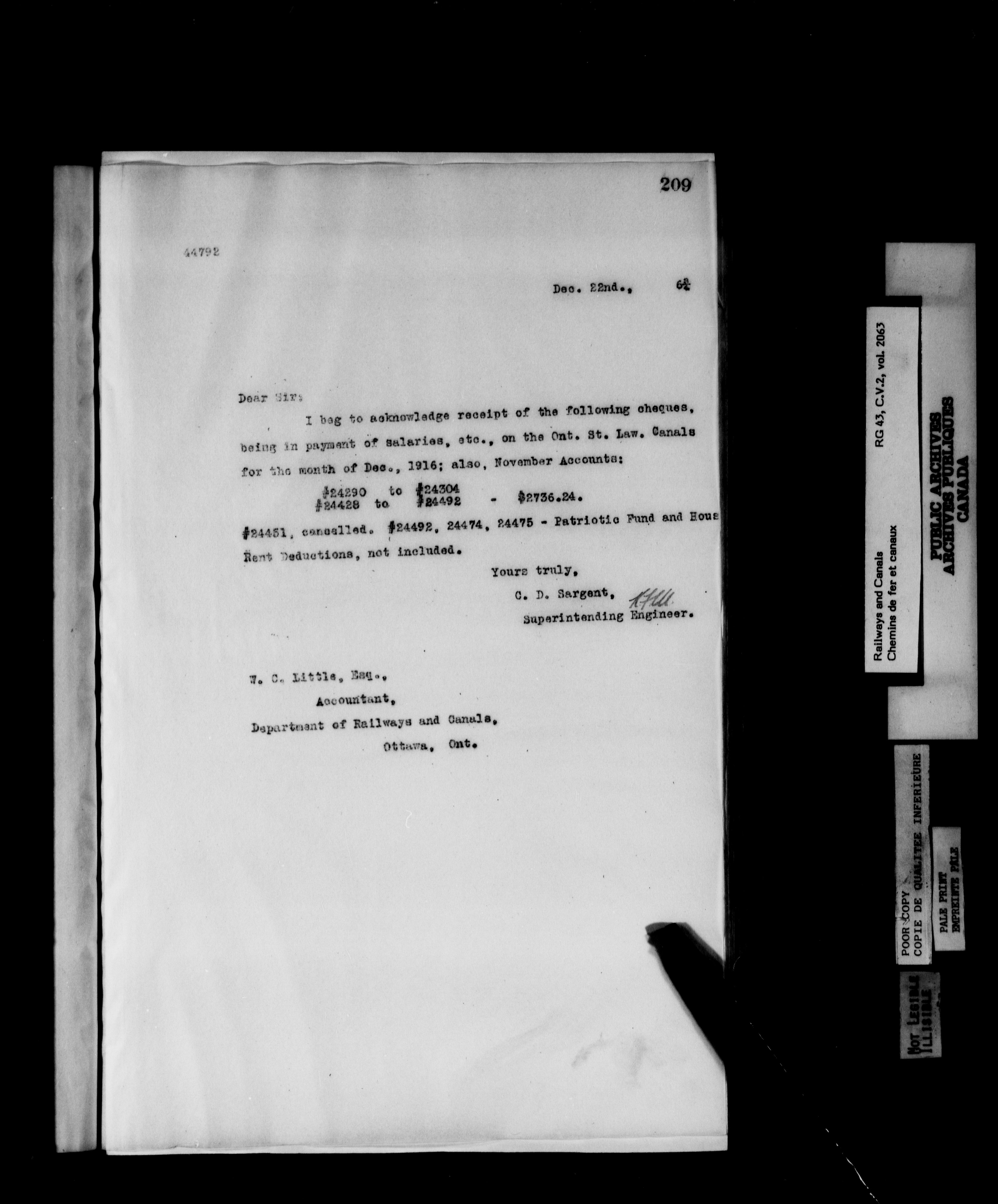 Department of Railways and Canals: Records related to the St. Lawrence Canals : T-6890