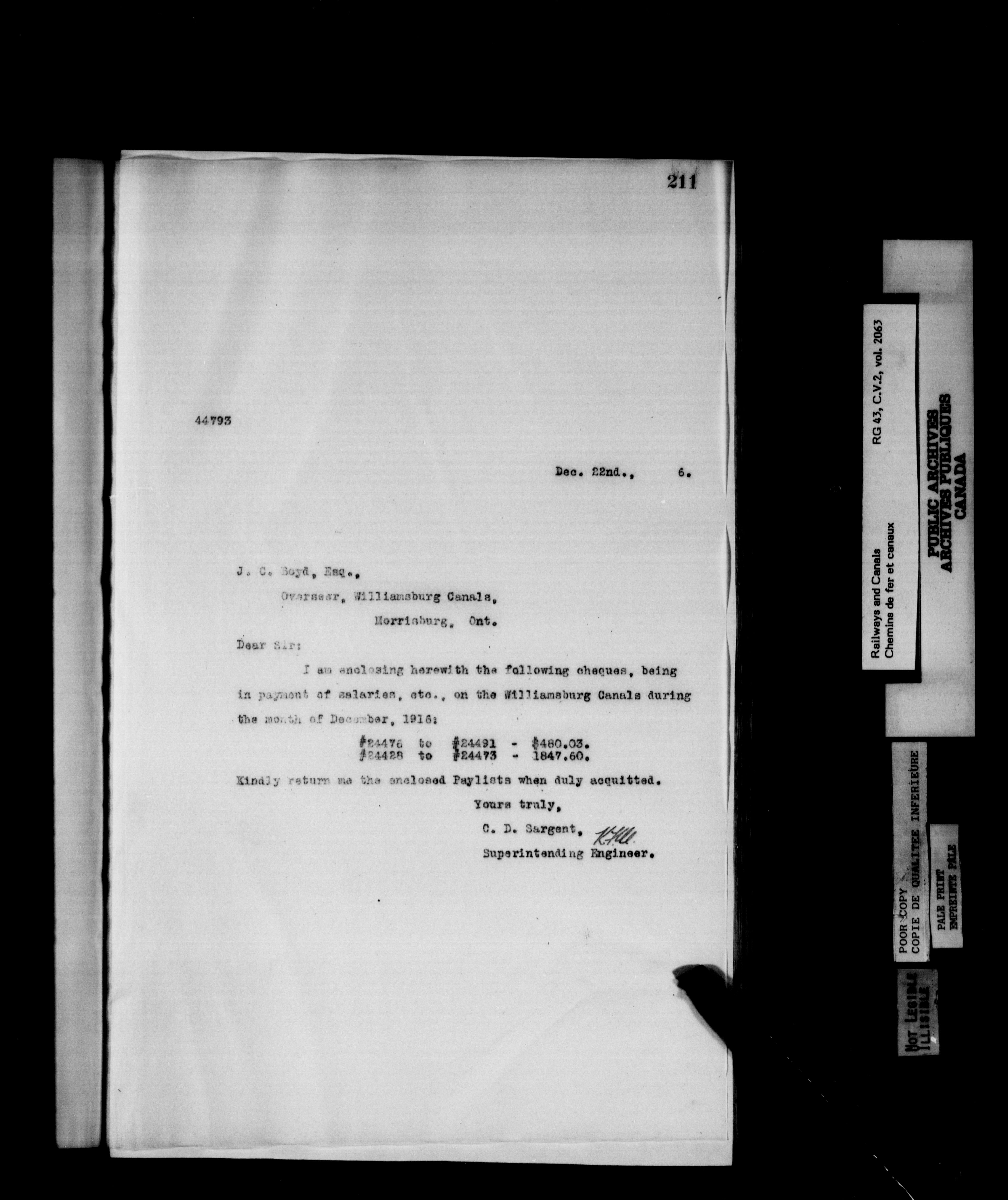 Department of Railways and Canals: Records related to the St. Lawrence Canals : T-6890