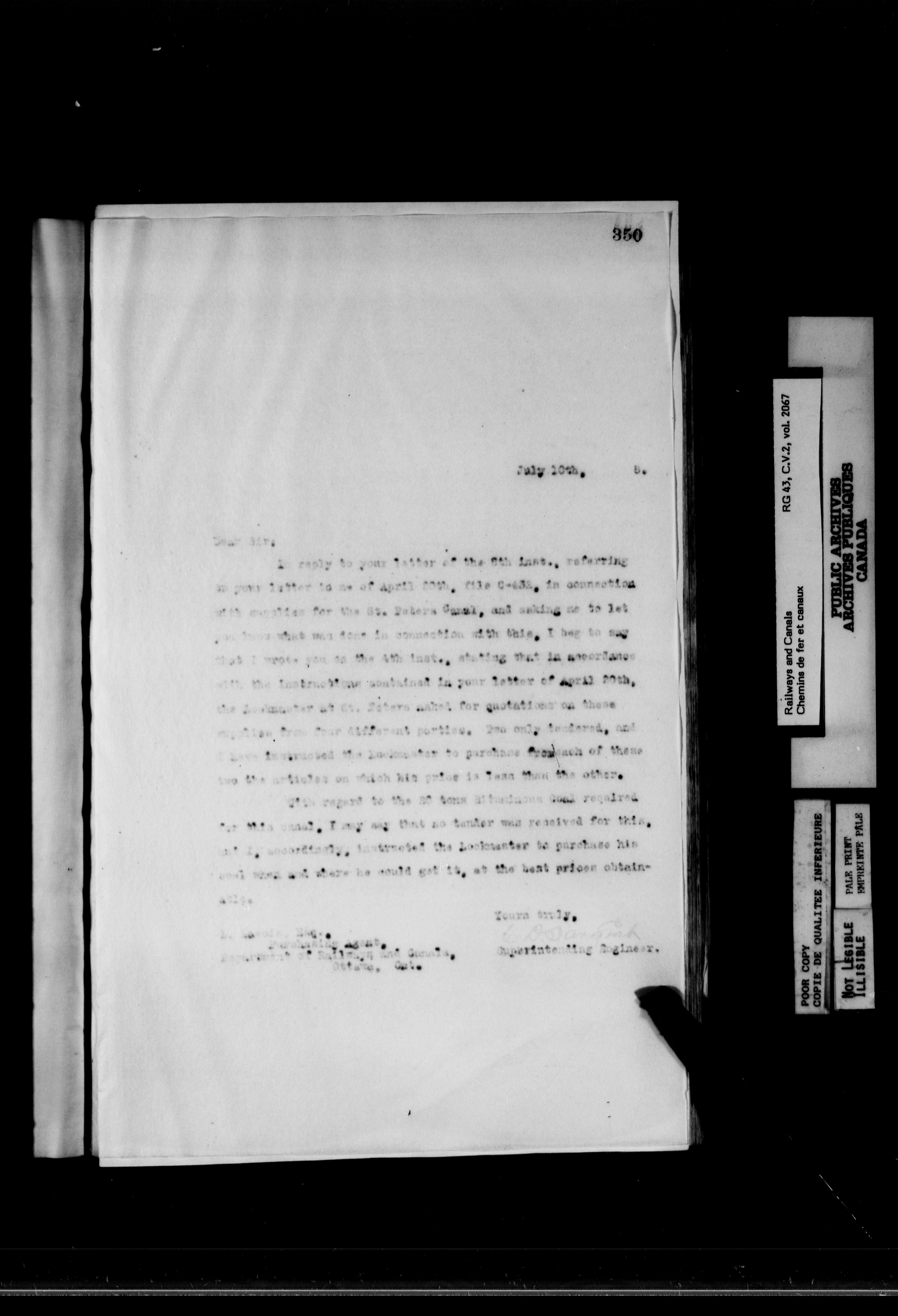 Department of Railways and Canals: Records related to the St. Lawrence Canals : T-6892