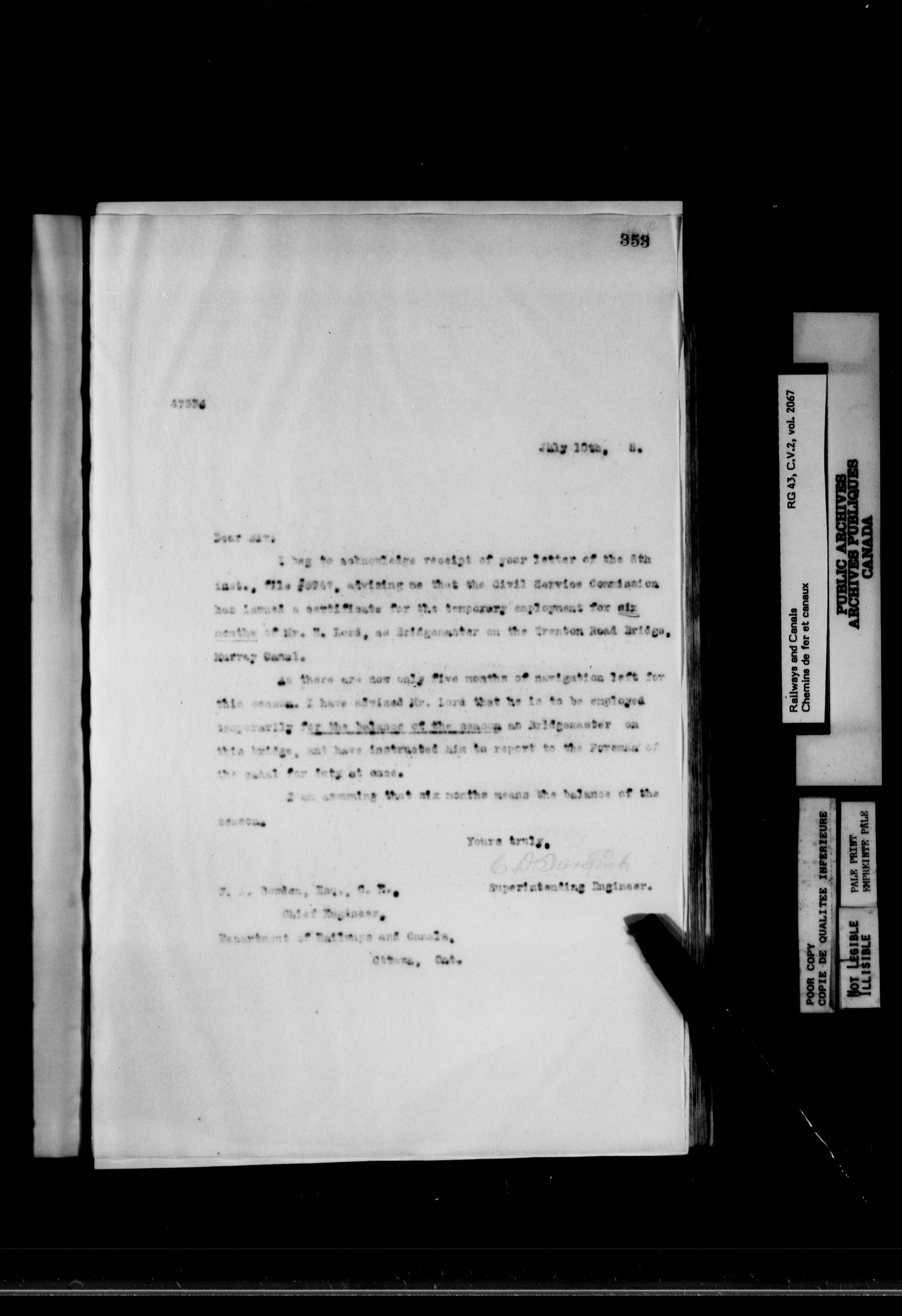 Department of Railways and Canals: Records related to the St. Lawrence Canals : T-6892