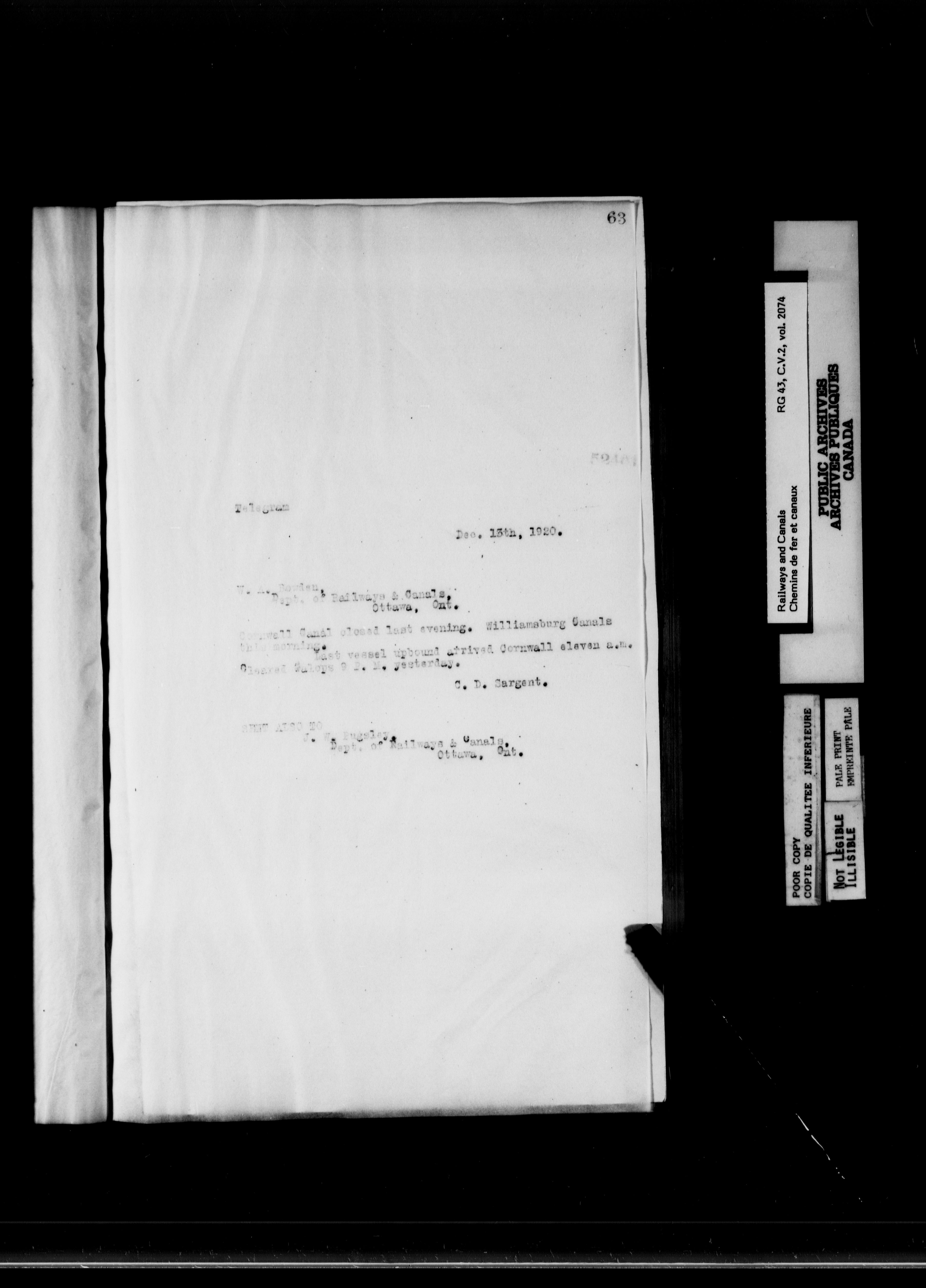 Department of Railways and Canals: Records related to the St. Lawrence Canals : T-6894