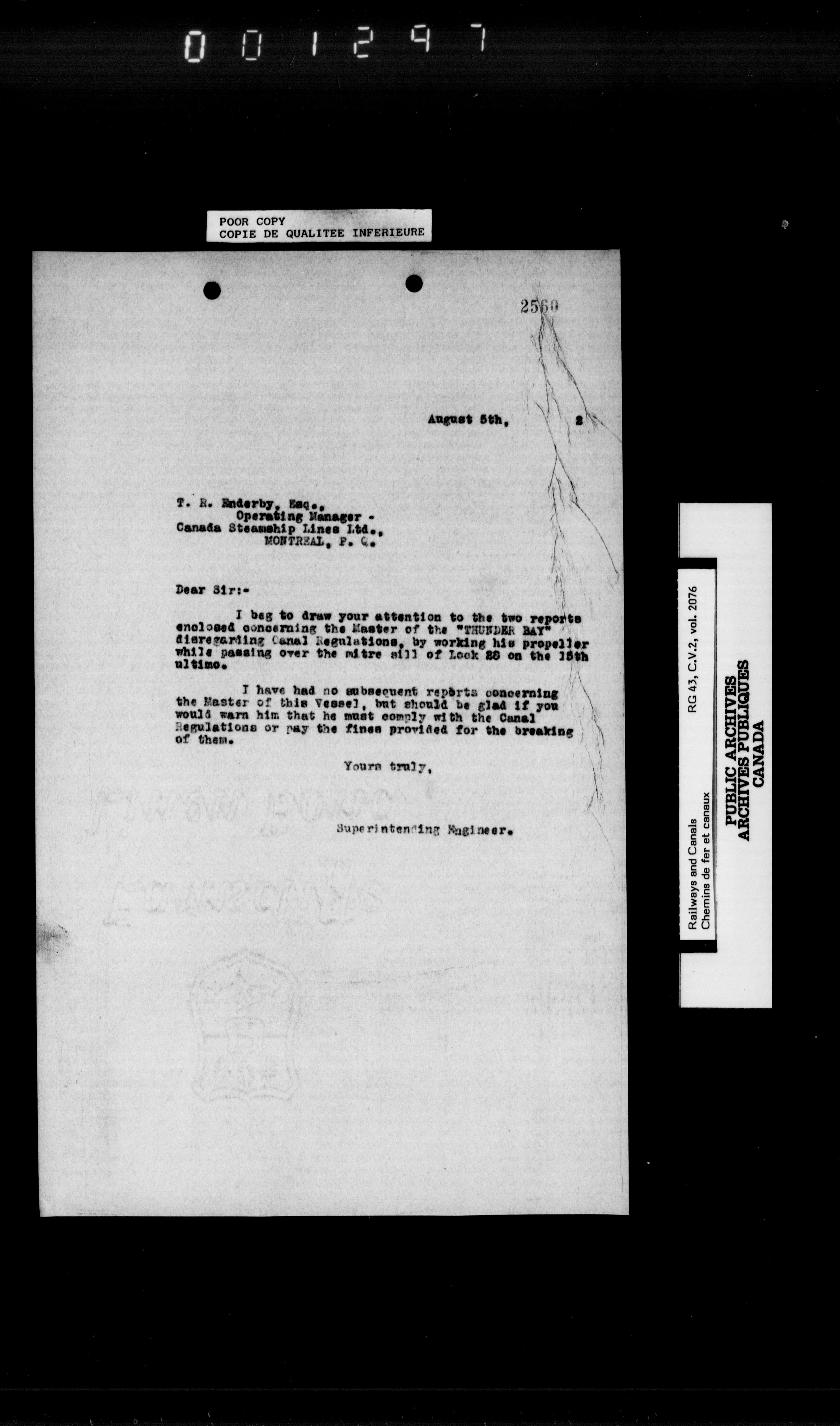 Department of Railways and Canals: Records related to the St. Lawrence Canals : T-6896
