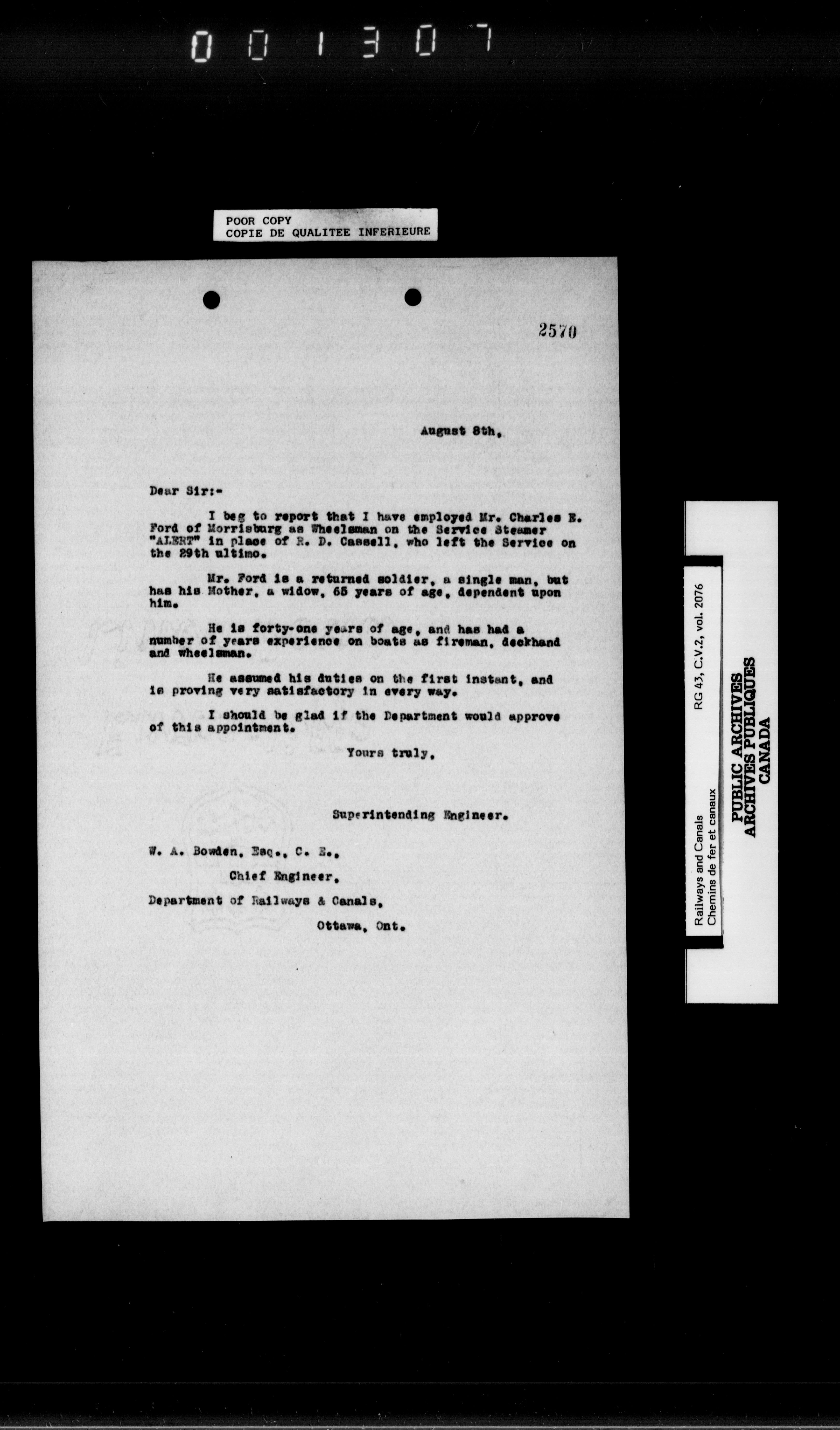 Department of Railways and Canals: Records related to the St. Lawrence Canals : T-6896