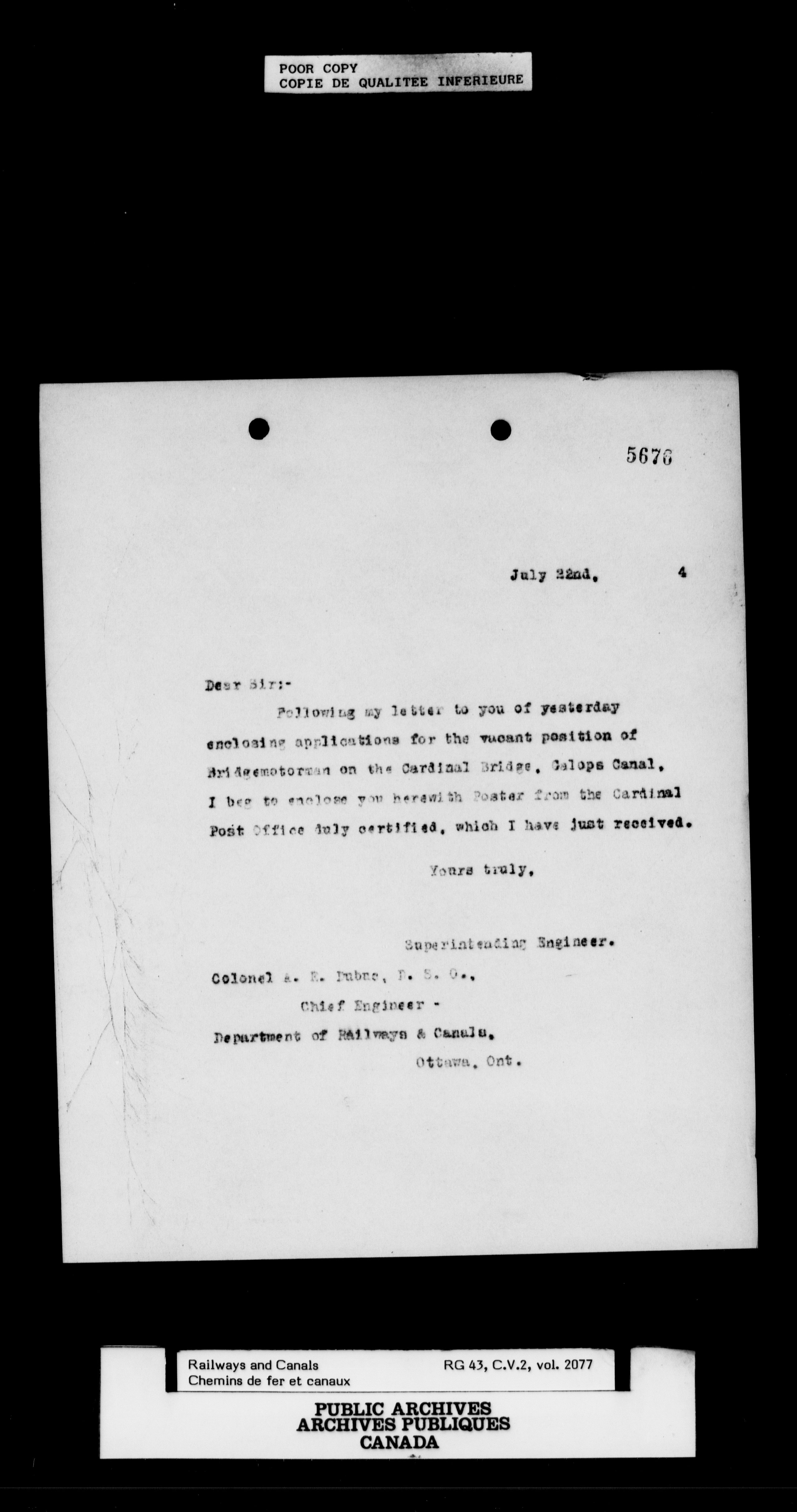Department of Railways and Canals: Records related to the St. Lawrence Canals : T-6899