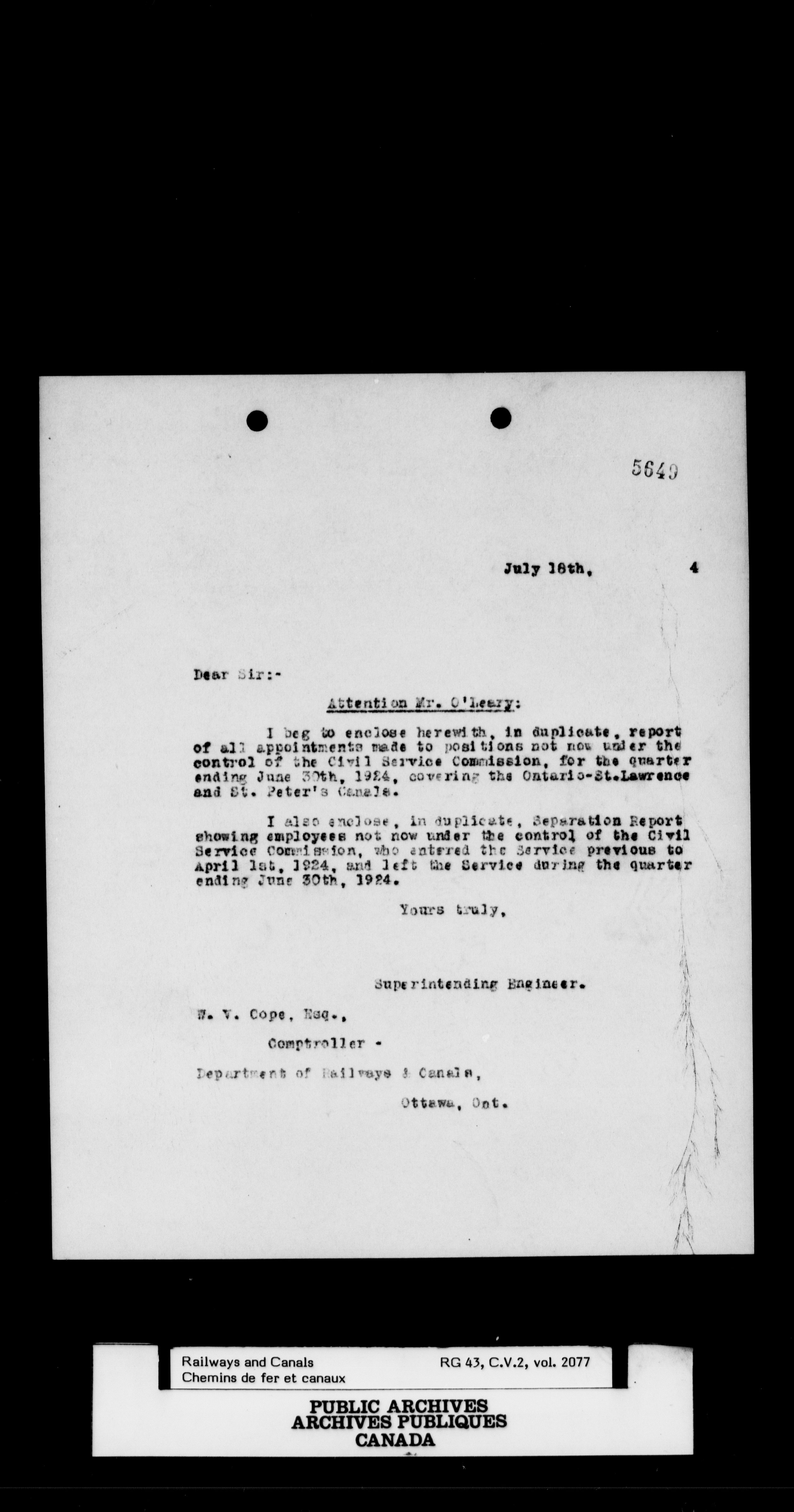 Department of Railways and Canals: Records related to the St. Lawrence Canals : T-6899