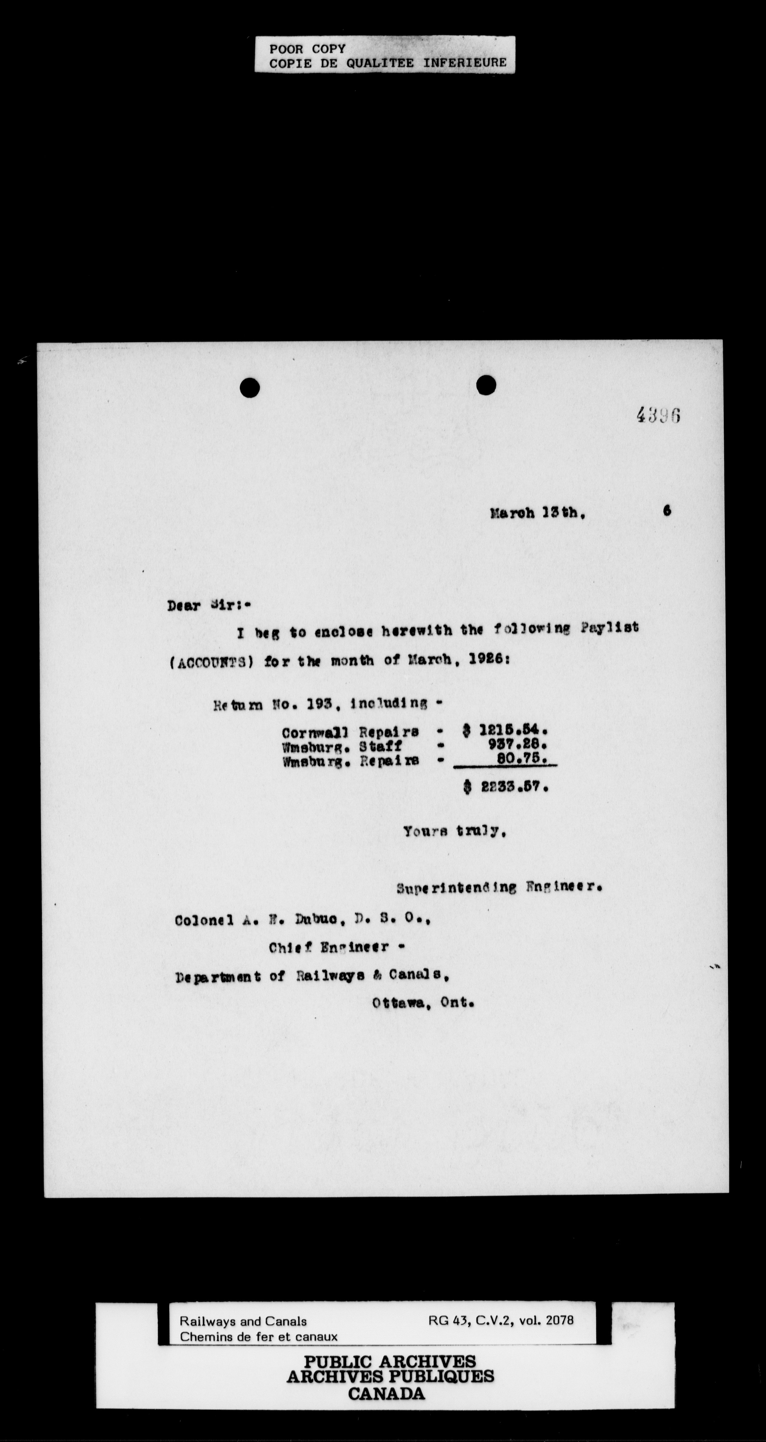 Department of Railways and Canals: Records related to the St. Lawrence Canals : T-6900