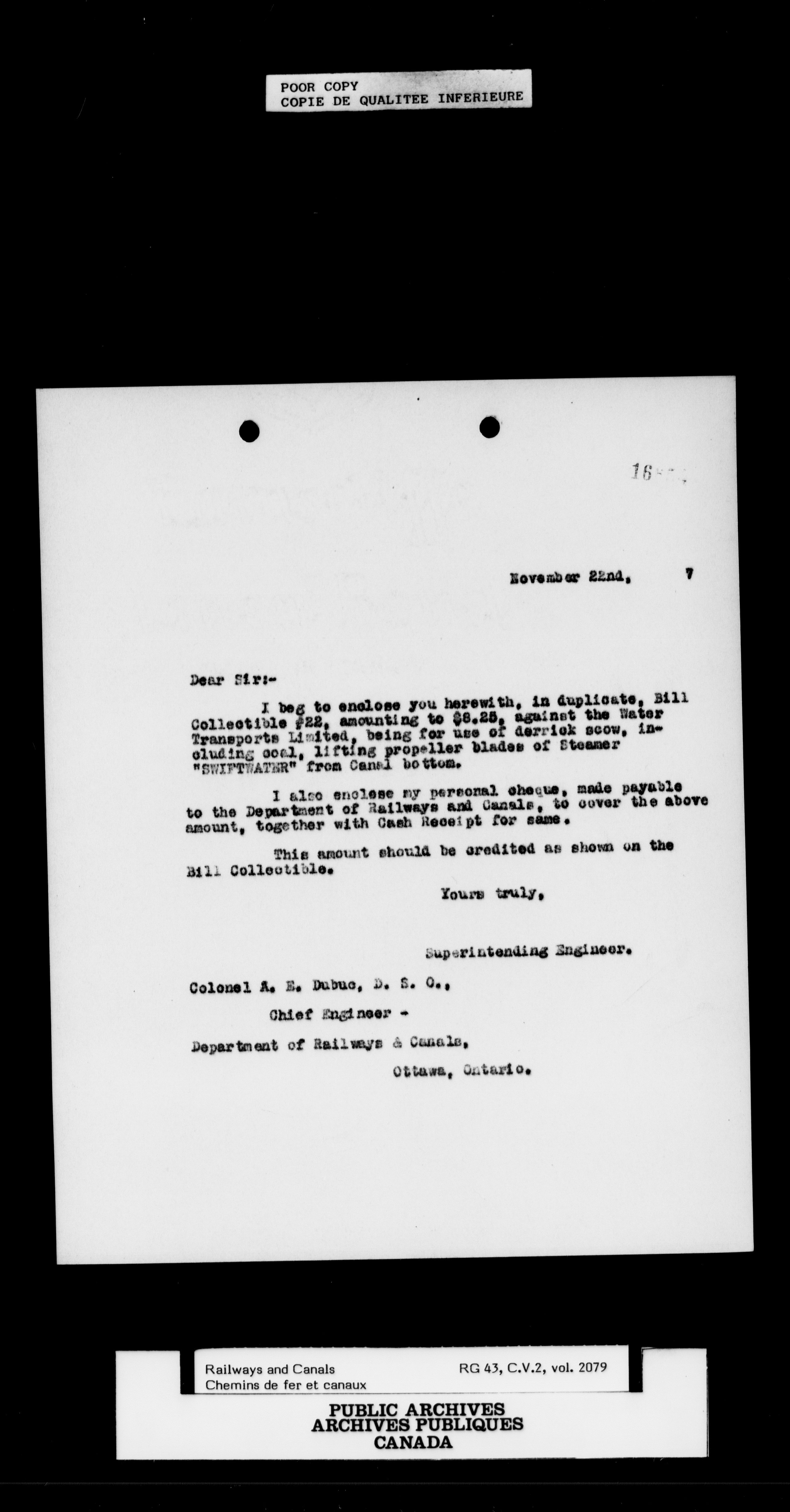 Department of Railways and Canals: Records related to the St. Lawrence Canals : T-6902