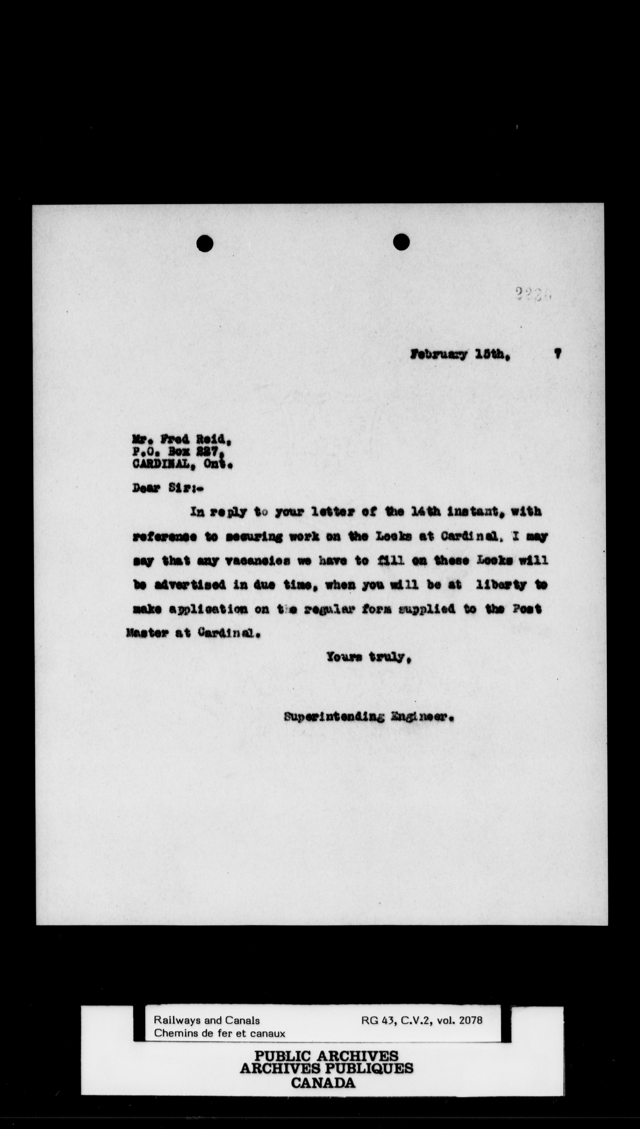 Department of Railways and Canals: Records related to the St. Lawrence Canals : T-6902